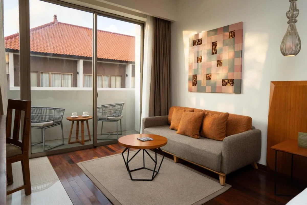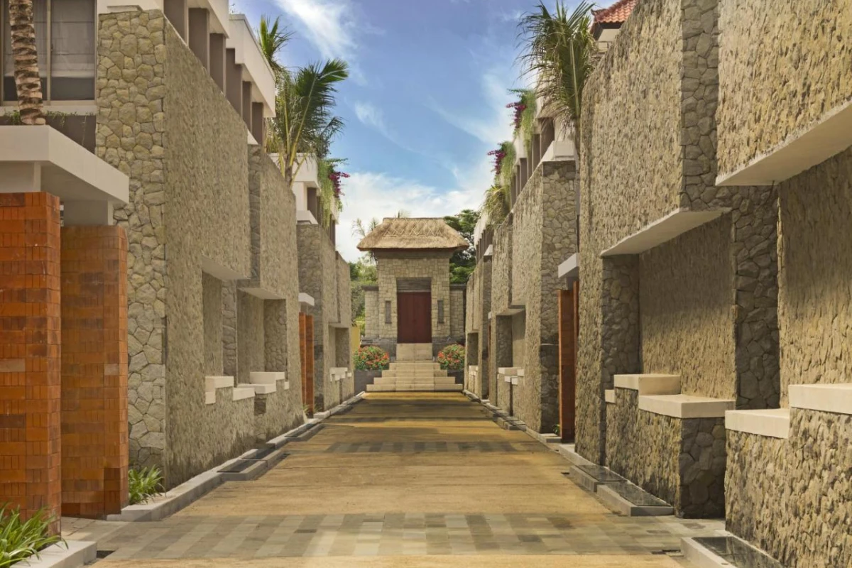 The Villas, comprising 16 one-bedroom and 3 two-bedroom retreats, deliver ultimate privacy with personal plunge pools and exclusive access to a meandering lagoon pool reserved for villa guests. The all-day dining restaurant presents a harmonious blend of Indonesian and Western cuisines, from aromatic rendang to fresh seafood grills, in a light-filled setting. The spa and wellness centre invites soothing treatments to melt away tensions, while the outdoor pool sparkles for leisurely swims. A 24-hour front desk tends to every need with dry cleaning, laundry, and concierge assistance for day trips or vehicle rentals, and meeting facilities support gatherings amid the tropical calm.