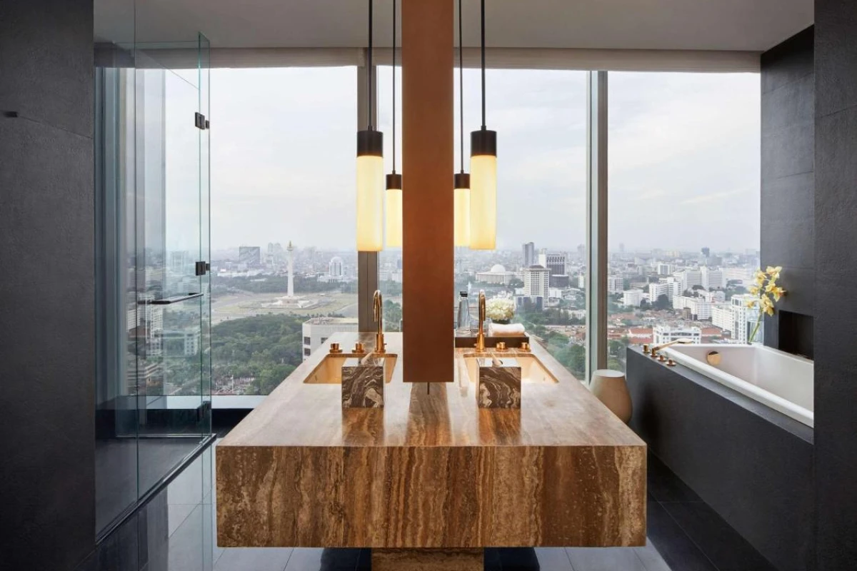 Park Hyatt Jakarta, a modern luxury hotel in the elegant Menteng district at the heart of Jakarta, captivates with its five-star sophistication, featuring an outdoor swimming pool and lush garden, just 1.1 kilometers from Sarinah.