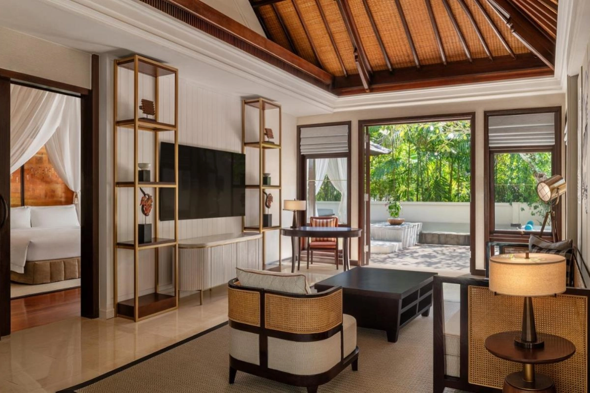 The Laguna, A Luxury Collection Resort & Spa, a five-star oasis along Nusa Dua's pristine beachfront, enchants with 287 guestrooms, suites, and villas set amid seven swimmable lagoons stretching over 5,000 square meters, blending modern Balinese elegance with the vibrant allure of the Indian Ocean.