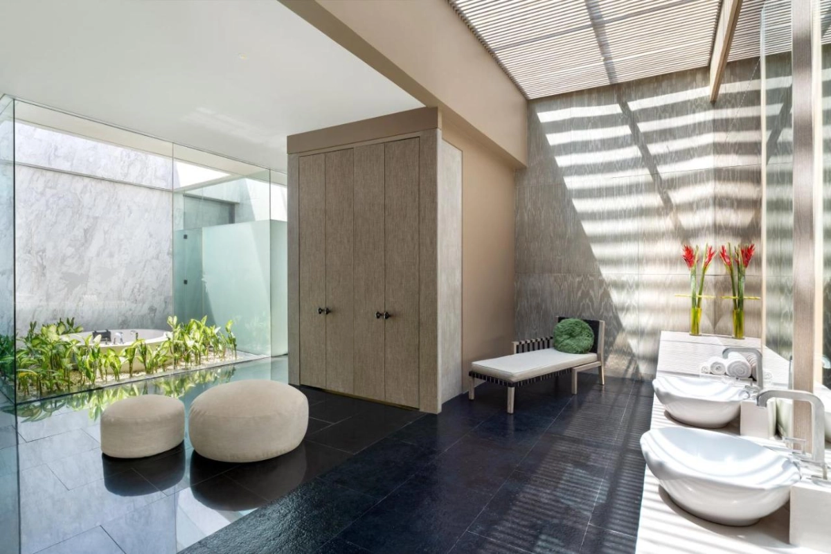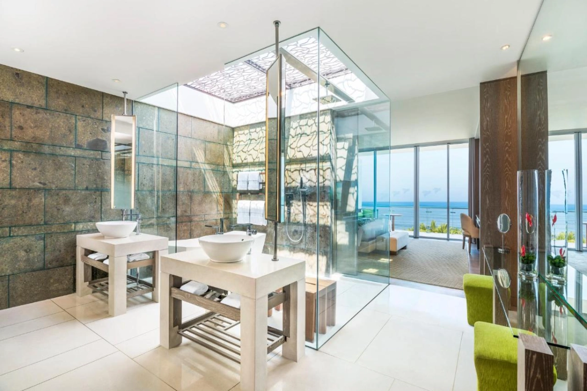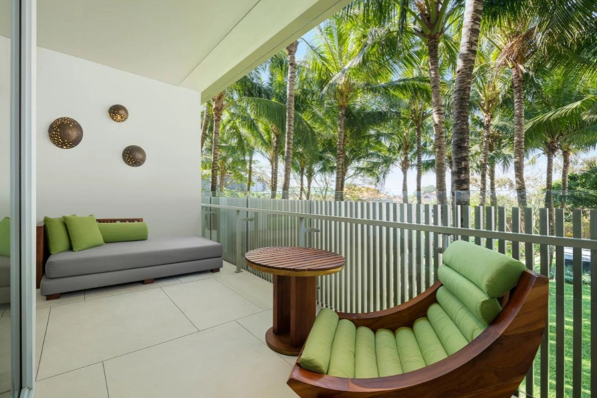 Spacious rooms and suites unfold with bold sophistication, featuring private balconies framing garden or panoramic Indian Ocean views, iPod docks, DVD players, and flat-screen televisions for effortless entertainment. Villas offer secluded privacy with private entrances, shimmering personal pools, terrazzo bathtubs, plush robes, and 350-thread-count cotton linens, blending lavish comfort with Bali's spirited charm.