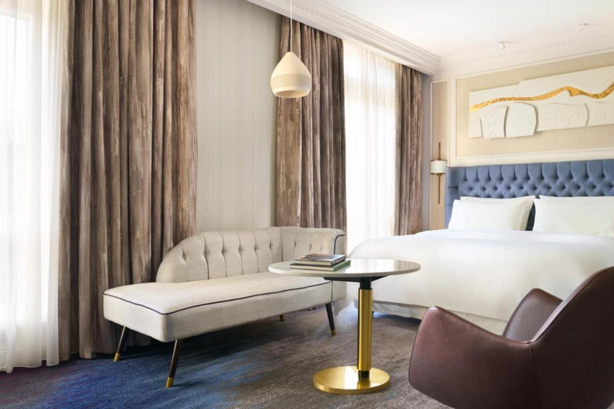 The 132 spacious rooms and suites unfold with sumptuous ease, featuring comfortable beds, 49-inch HD LCD TVs with in-room movies and satellite channels, minibars, and opulent bathrooms with deluxe toiletries, cosy bathrobes, and tea/coffee facilities. Select accommodations boast balconies or glass atrium views, creating serene havens where the devoted staff ensures thoughtful details, from plush linens to personalized welcomes, fostering a sense of quiet belonging amid the avenue's gentle murmur.