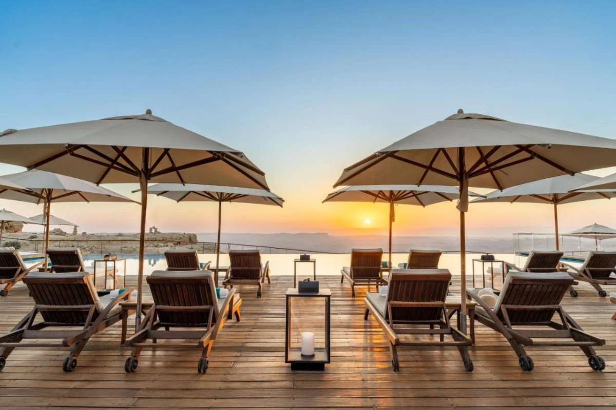 Beresheet Hotel by Isrotel Exclusive Collection, perched on a cliff overlooking the Ramon Crater in Mitzpe Ramon, Israel, offers a luxurious retreat near Avdat Archaeological Site.