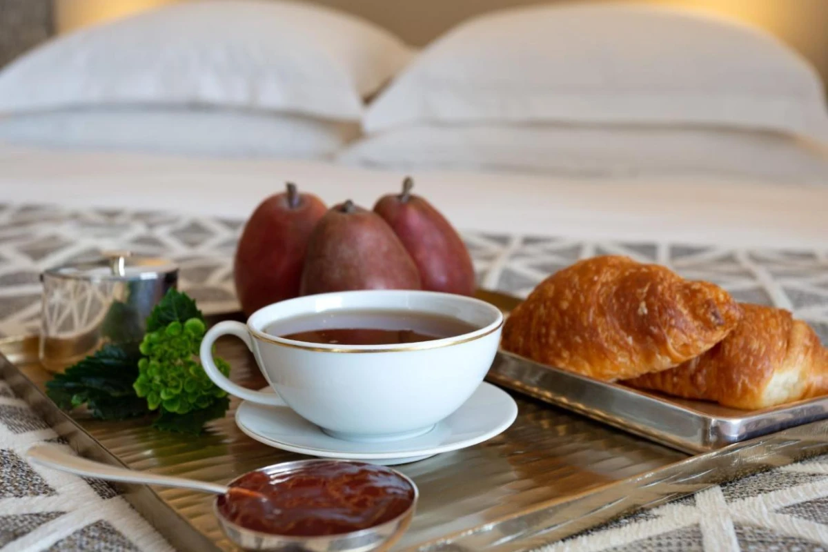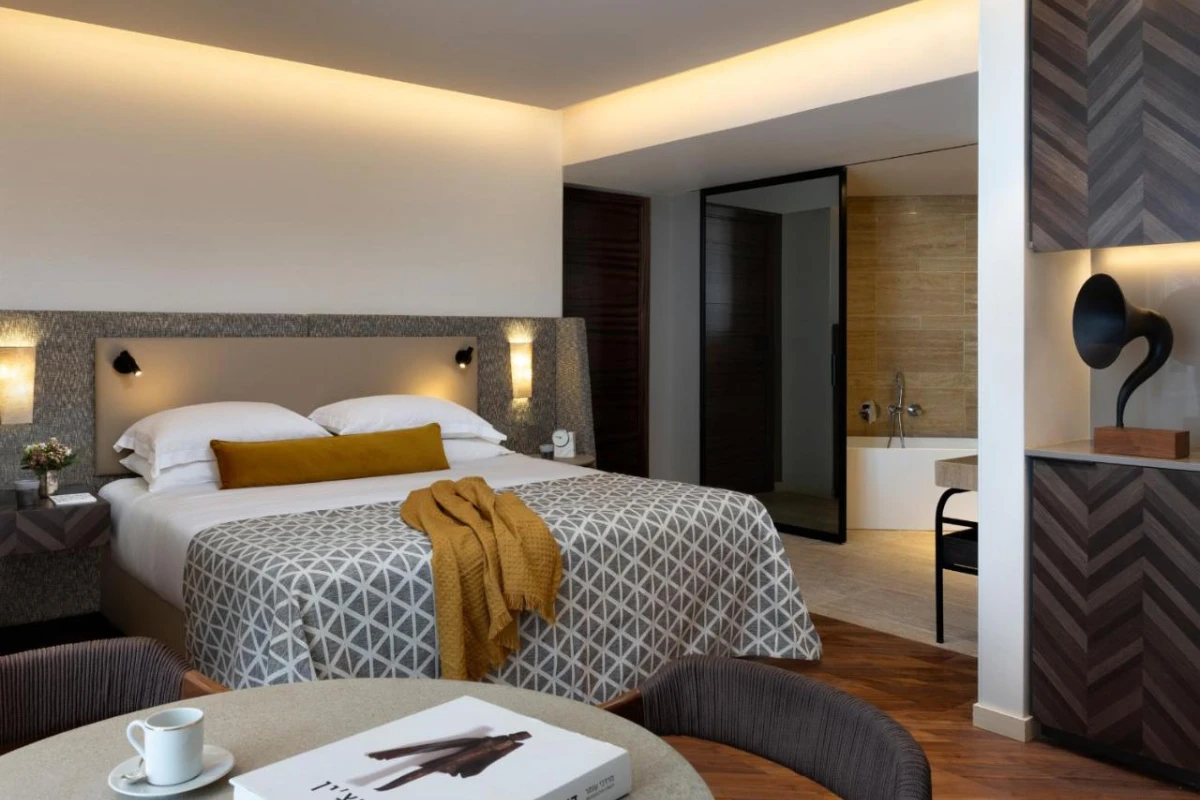The restaurant serves breakfasts brimming with fresh fruits and Mediterranean-inspired dishes, savoured in a garden-view dining room, while a bar crafts cocktails infused with local citrus notes, paired with gentle coastal melodies, weaving a refined yet inviting ambience.