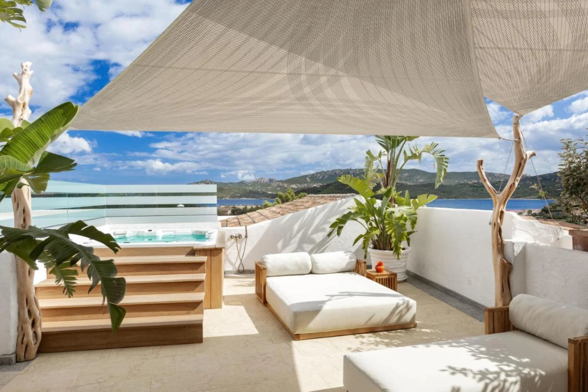 The hotel's 76 stylish rooms and suites, including the lavish Presidential Suite, feature air-conditioned comfort, flat-screen TVs, and private bathrooms with rainfall showers and premium toiletries. Most offer balconies or terraces with views of the lush gardens or glittering Gulf of Arzachena, perfect for tranquil mornings or intimate evening aperitifs.