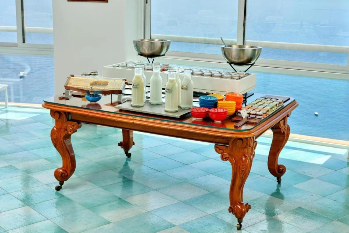 Two Michelin-starred restaurants elevate dining: La Serra, in the main building, serves gourmet Mediterranean dishes like lobster ravioli with lemon zest on panoramic terraces, while Remmese Beach Club, accessible by funicular or water taxi, offers fresh seafood and caprese salads on the private beach. Three bars craft artisanal cocktails, from Amalfi limoncello spritzes to classic negronis, with a lavish breakfast buffet of pastries, local cheeses, and fruits served daily.