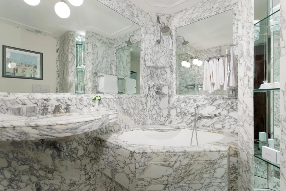 The 32 luxurious rooms and suites exude timeless charm, featuring sleek Art Deco furnishings, polished parquet floors, and soft velvet accents. Air-conditioned spaces include flat-screen TVs, Nespresso machines, minibars, and private bathrooms with Etro toiletries, some opening to private balconies with views of the lush Villa Borghese gardens. The intimate design, paired with discreet service, crafts a refined haven for discerning travellers.