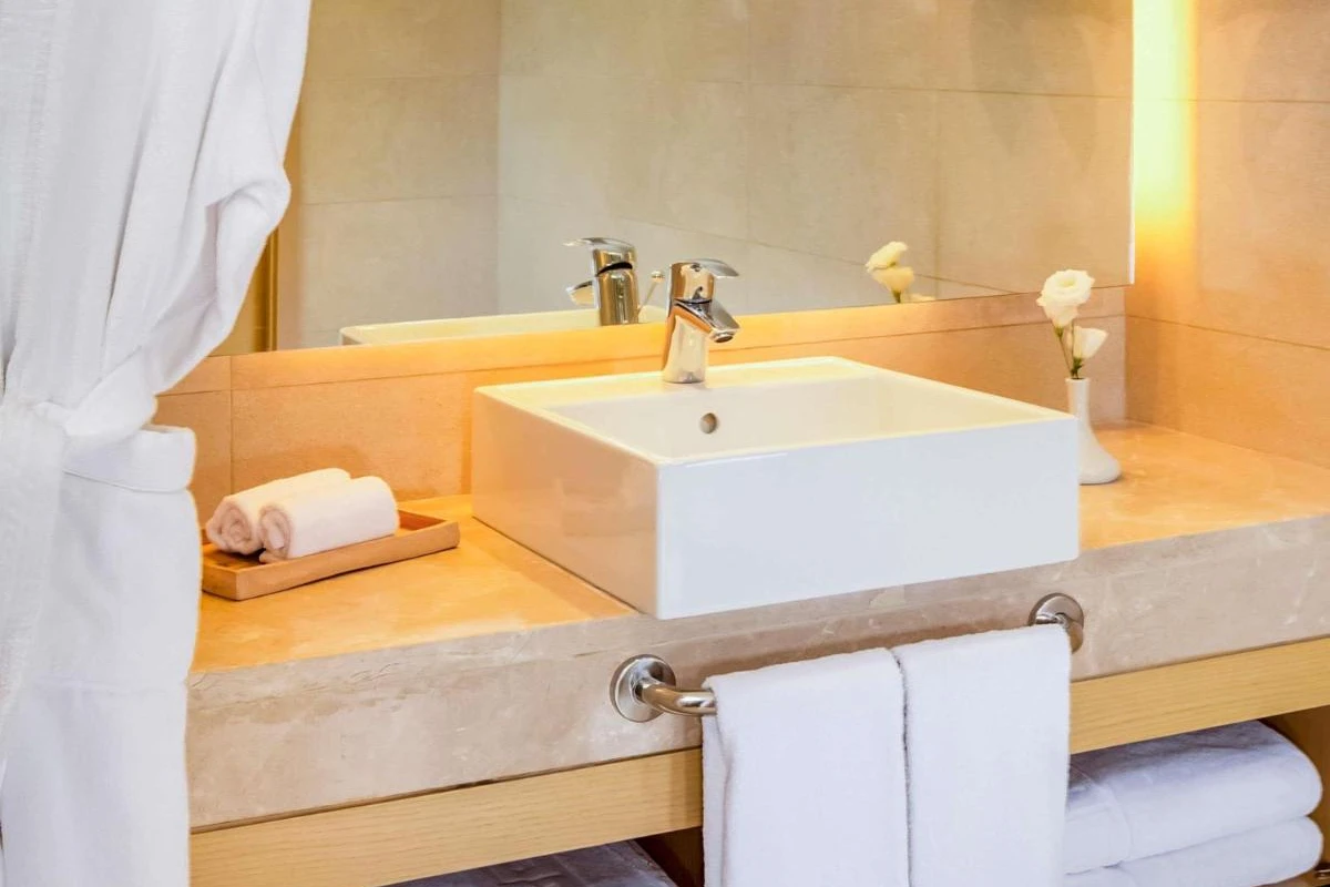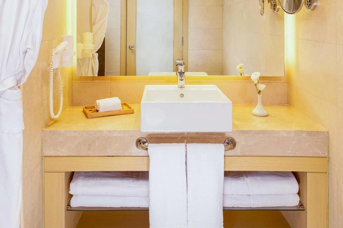 The 183 spacious rooms and suites radiate refined comfort, adorned with crisp white linens and bathed in natural light through expansive windows. Each features air-conditioned tranquility, satellite televisions, work desks, and luxurious bathrooms with artisanal toiletries, crafting an intimate haven for travellers seeking both inspiration and repose.