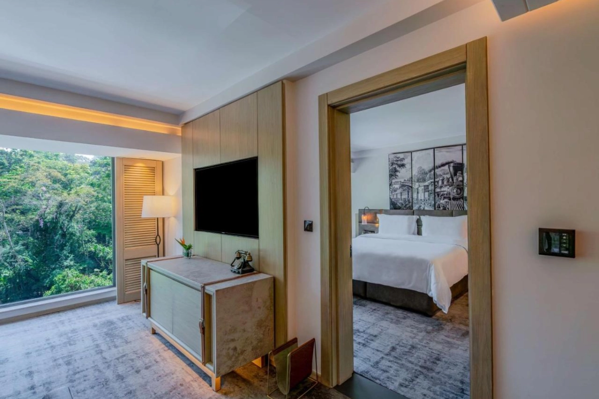 The 102 spacious rooms and suites unfold with inviting warmth, featuring air-conditioned comfort, flat-screen TVs, safety deposit boxes, desks, minibars, and sleek bathrooms with premium toiletries. Select rooms boast balconies with forest or pool views, creating tranquil havens where attentive staff ensure thoughtful details, from plush linens to warm welcomes, fostering a sense of belonging amid the city's lively energy.