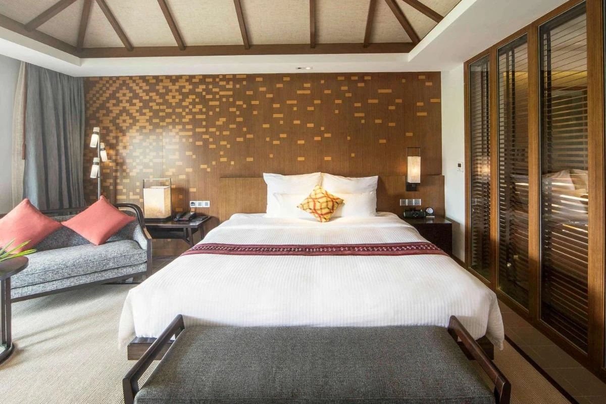 Pullman Luang Prabang, a sophisticated five-star hotel nestled in the serene outskirts of Luang Prabang, Laos, offers a modern retreat within lush gardens, blending contemporary elegance with the tranquil spirit of this UNESCO World Heritage destination.
