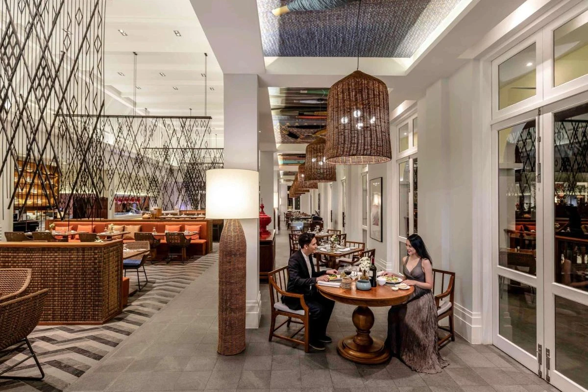 The 123 air-conditioned rooms and suites provide a refined haven, each featuring sleek wardrobes, plush bedding, and expansive windows that frame views of the surrounding greenery. Thoughtfully designed interiors create a seamless blend of comfort and style, inviting guests to unwind in spaces that feel both luxurious and connected to the natural beauty of the region.