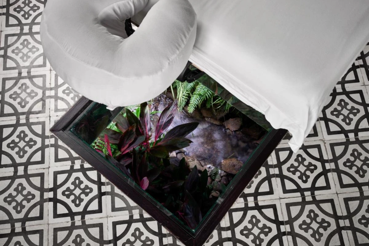 The 23 individually designed accommodations, including tented villas and suites, weave a tale of cultural fusion, blending French colonial elegance with Laotian craftsmanship. Vintage travel trunks, antique furnishings, and local artifacts adorn each space, while private terraces or plunge pools in select villas reveal captivating views of the cascading waterfall, serene river, or verdant hillside. The interiors, inspired by ancient temples, create a harmonious balance of history and modern comfort.