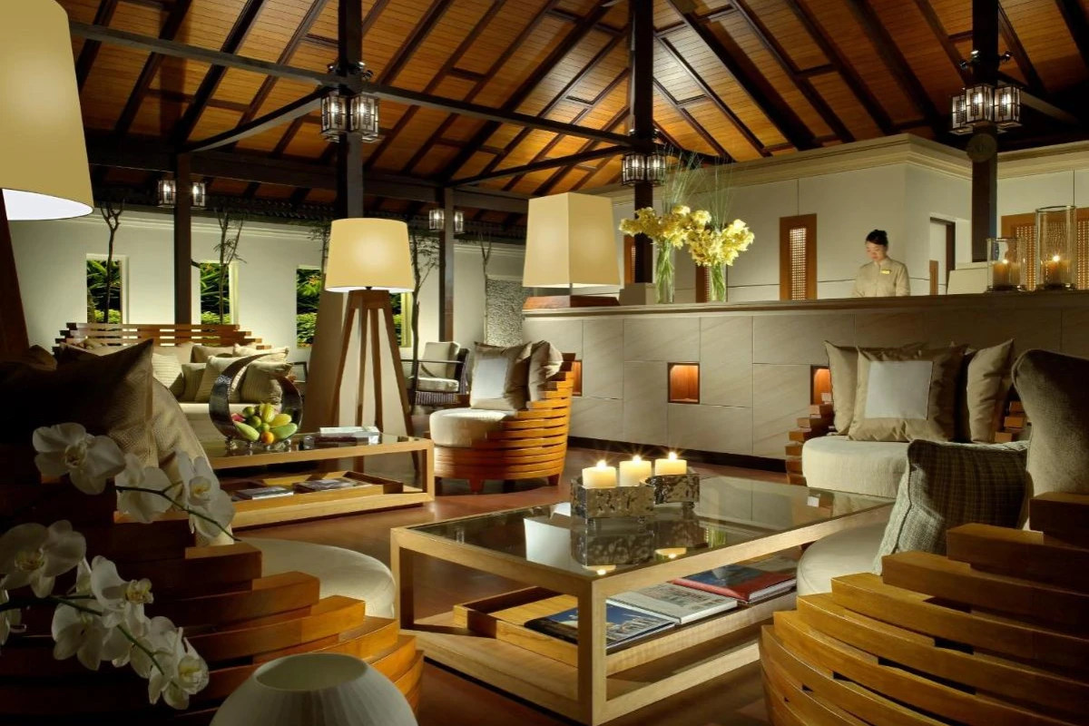 Feast Village awakens the senses with an international breakfast spread and dinners rich with Malay delicacies, their spices mingling with sea breezes, while Fisherman's Cove, reserved for guests 16 and older, presents seafood-focused dishes alongside Western, Chinese, and Italian flavours in a refined, smart-casual setting. Uncle Lim's Kitchen serves soulful Nyonya and Hockchew Chinese-style home cooking with sea vistas, and Royal Bay Beach Club delivers Asian and international plates on a shaded terrace for lunch. The Spa Village's Jamu Bar crafts healthy salads and specialty drinks, while The Straits offers an intimate private dining experience with 24-hour advance booking. Royal Bay Beach Club's chic lounge and Chapman's Bar, set on white sands with bay views, pour cocktails and fine beverages, inviting unhurried evenings under vibrant, jewel-toned skies. Beyond dining, the Spa Village's rejuvenating therapies, two outdoor pools, fitness centre, squash, and tennis courts weave wellness into the island's calm, with the Kazbah Gift Shop adding a touch of local craft.