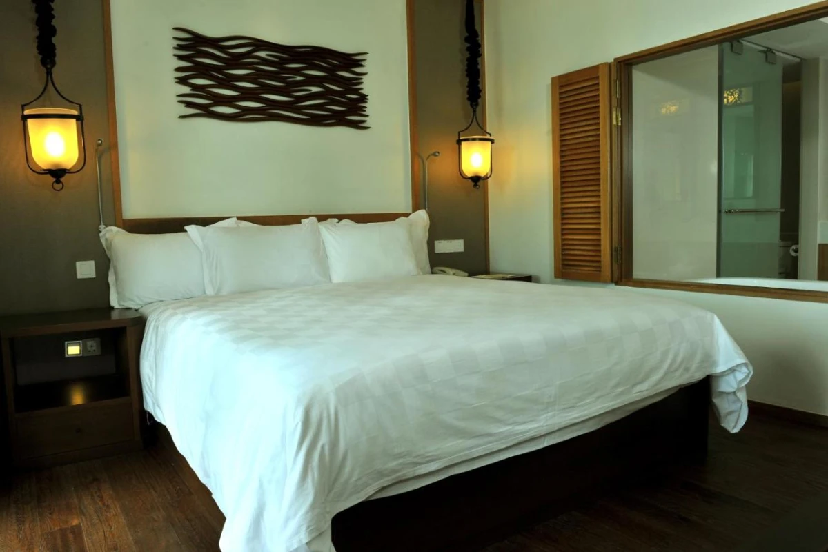 Sands Restaurant graces the beachfront with a medley of local and Western specialties, from spiced satay skewers to tender grilled catches, savoured al fresco under swaying palms or amid starlit barbecues, while the Reading Room offers a cozy nook for leafing through books or magazines over delicate teas and snacks. Sunset Pool Bar tempts post-swim with light meals and chilled beverages beside rippling waters, complementing cruises, catamaran sails, mangrove boat rides, and limestone cave explorations. The spa's rejuvenating full-body massages ease the day's adventures, tennis courts spark friendly rallies, and the fitness centre with sauna and steam rooms restores deeper calm, as fishing trips and eagle-feeding sessions draw the island's wild essence close.