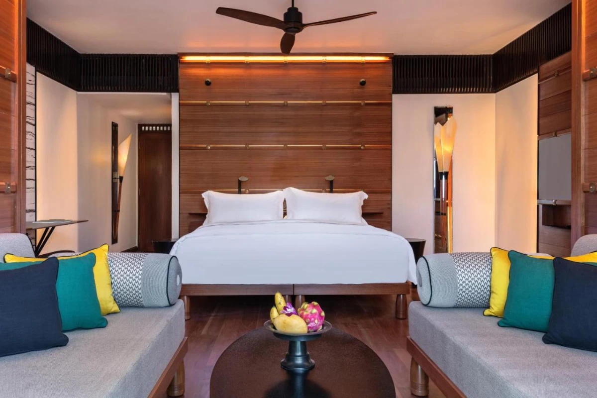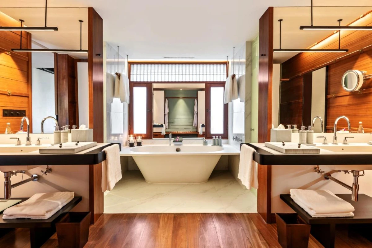 Each accommodation, whether in the main building with rainforest vistas or immersed in the forest with private pools, unfolds to a living area and private balcony framing tropical landscapes, complemented by en suite bathrooms with dressing areas and deep bathtubs for serene soaks amid the canopy's gentle hush.