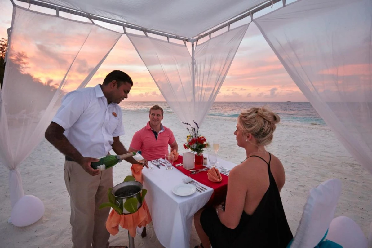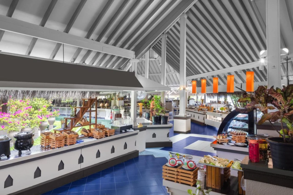 Dining is a vibrant experience at the main restaurant, where a diverse buffet showcases international and Maldivian flavours, enhanced by lively theme nights featuring seafood feasts and tropical specialties. The Cocktail Bar and Nika Lounge offer refreshing drinks and light snacks, from handcrafted cocktails to fresh juices, served against the backdrop of ocean breezes. The Chavana Spa provides soothing massages and wellness treatments inspired by Balinese traditions, while water sports like snorkeling, diving, and windsurfing invite adventure. Curated island tours and fishing excursions immerse guests in the Maldives' captivating marine and cultural beauty.