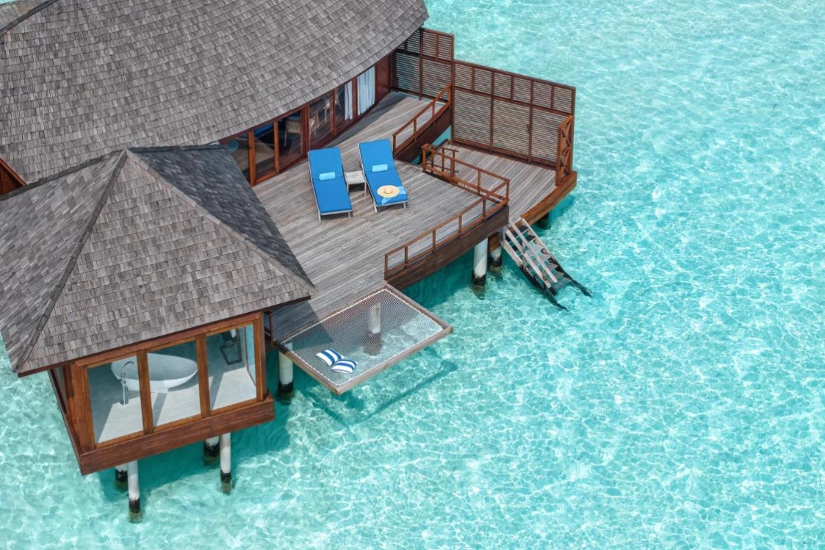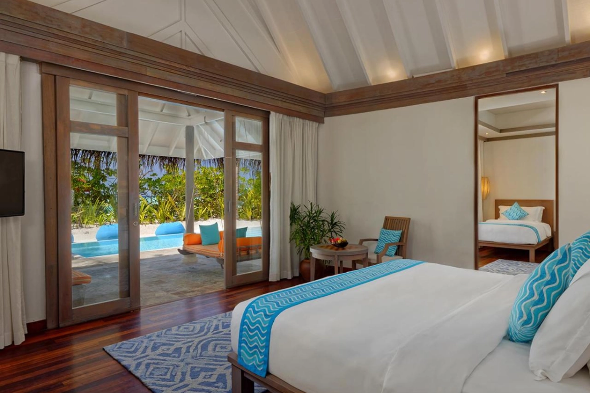 The 110 villas and suites exude tropical elegance, featuring private terraces or balconies with stunning sunrise, sunset, or lagoon views. Many include private plunge pools, while all offer air conditioning, flat-screen TVs, minibars, and premium tea and coffee facilities. Spacious bathrooms with organic toiletries enhance the serene ambiance, blending Maldivian craftsmanship with modern luxury for a refined and restful stay.