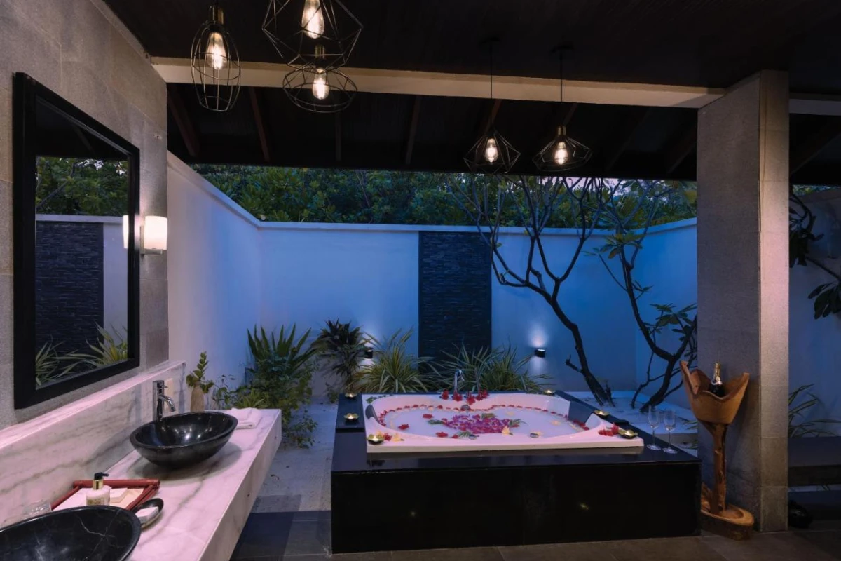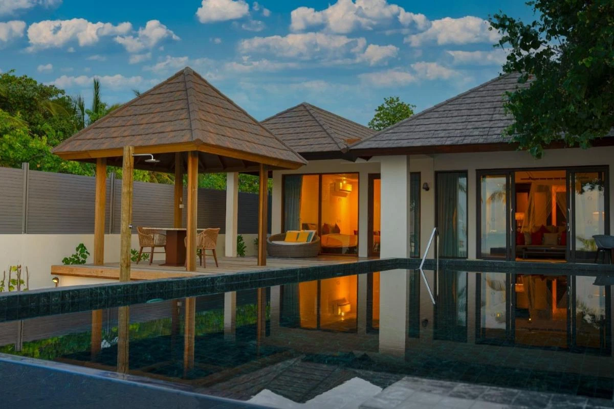 Each villa blends contemporary Maldivian design with modern comforts, featuring open-air bathrooms, private outdoor gardens with sun loungers, iPod docks, electric kettles, coffee machines, DVD players, dental kits, and slippers. Spacious interiors with high ceilings and direct beach or lagoon access create a refined tropical sanctuary, with select villas offering private pools for added seclusion.