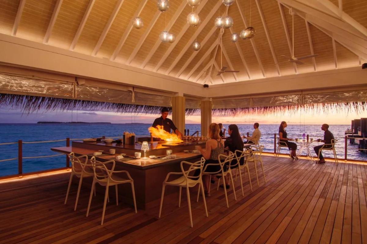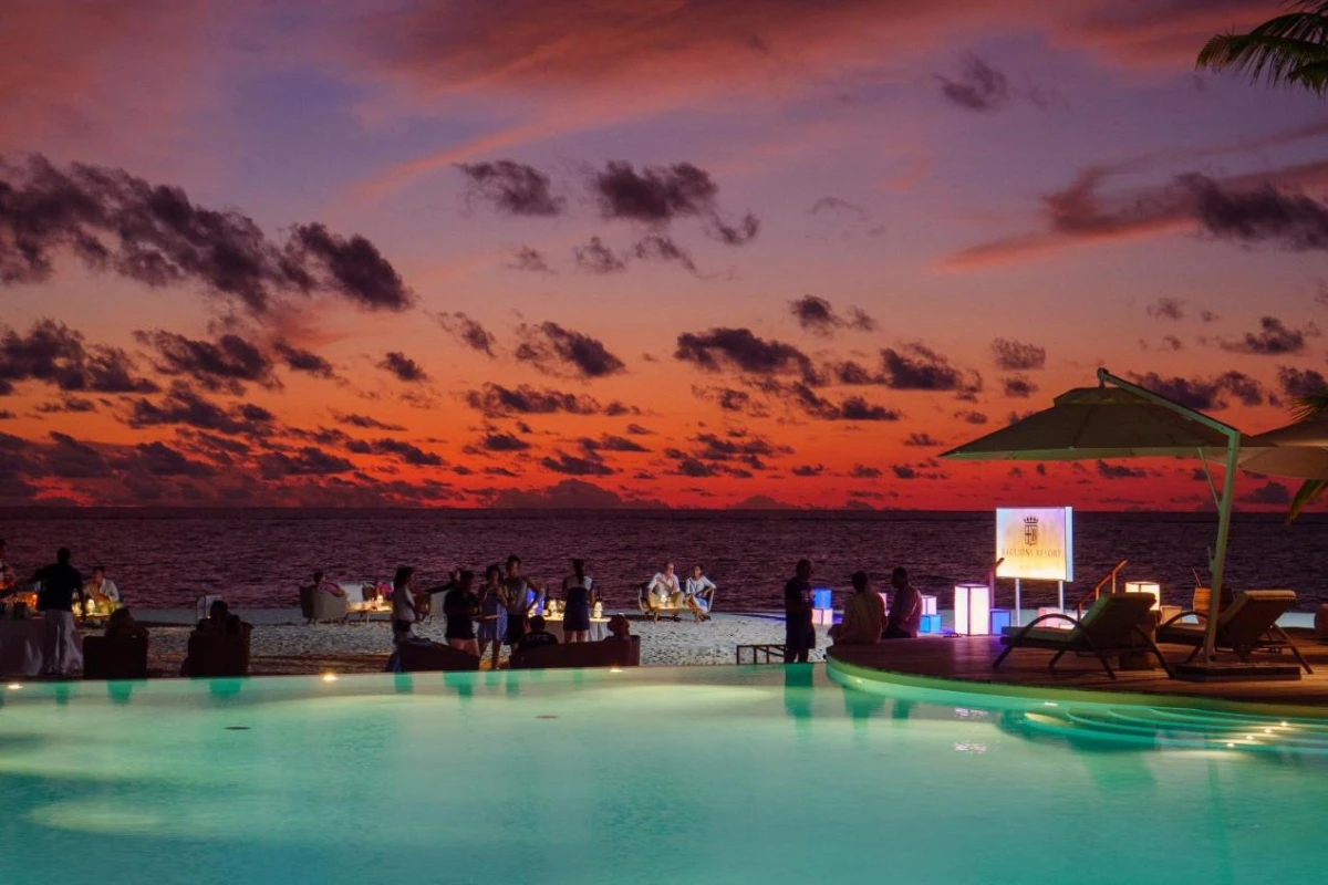 Dining is a culinary journey at Gusto, where Italian classics, vibrant Japanese dishes, and exquisite sushi are crafted with flair, complemented by buffet breakfasts offering vegetarian, dairy-free, and halal options. The beachfront bar serves refreshing cocktails and light bites, enjoyed on a sun-kissed terrace or in the lush garden, with live music enhancing the evening's Maldivian charm. The Baglioni Spa offers rejuvenating treatments inspired by local traditions, while the infinity pool and private beach invite tranquil relaxation. Adventure beckons with complimentary canoeing, table tennis, tennis, snorkeling, and diving to explore vibrant coral reefs, supported by a state-of-the-art fitness centre. Curated excursions, like sunset cruises, immerse guests in the Maldives' natural splendor.