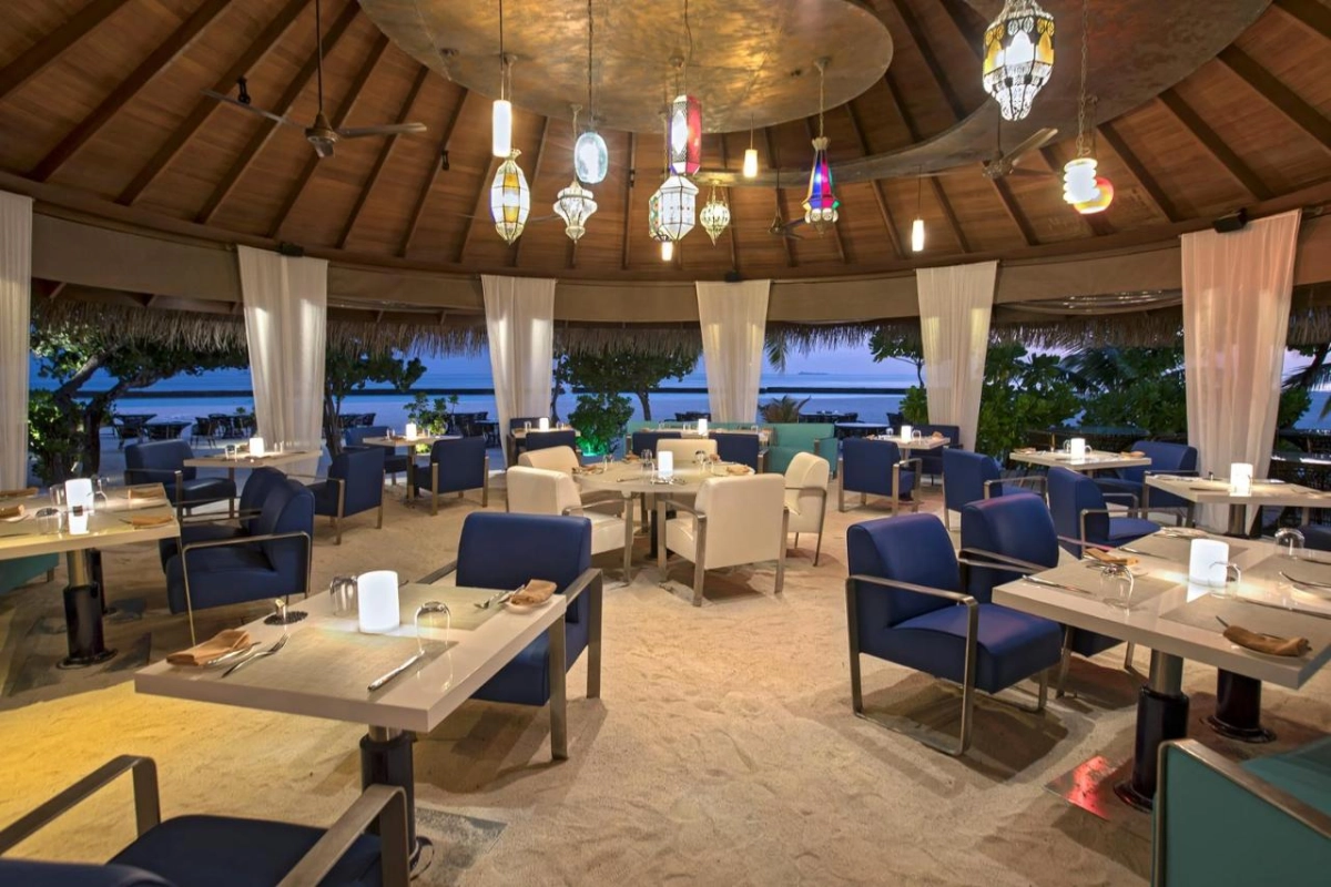 Dining is a vibrant journey across three venues. Jahaz Restaurant offers expansive international buffets for breakfast and dinner, complemented by a wine cellar for perfect pairings. Jing, perched on the jetty, serves Asian-fusion sharing plates, while Meeru, a beachfront grill, presents fresh seafood and meats. Jahaz Bar and Jing Bar craft cocktails and live music, enhancing starlit evenings. The Constance Spa, set over water, provides rejuvenating massages, Thai treatments, hot and cold plunge pools, and a serene relaxation deck. A yoga room with a dedicated Yoga Master offers Hatha and Pranayama sessions, while the fitness centre features Life Fitness equipment. The TGI Dive Centre, PADI-certified, offers diving courses, night dives, and snorkeling, with water sports like windsurfing, paddleboarding, and jet skiing. Curated excursions, like whale shark spotting, immerse guests in the atoll's marine wonders.