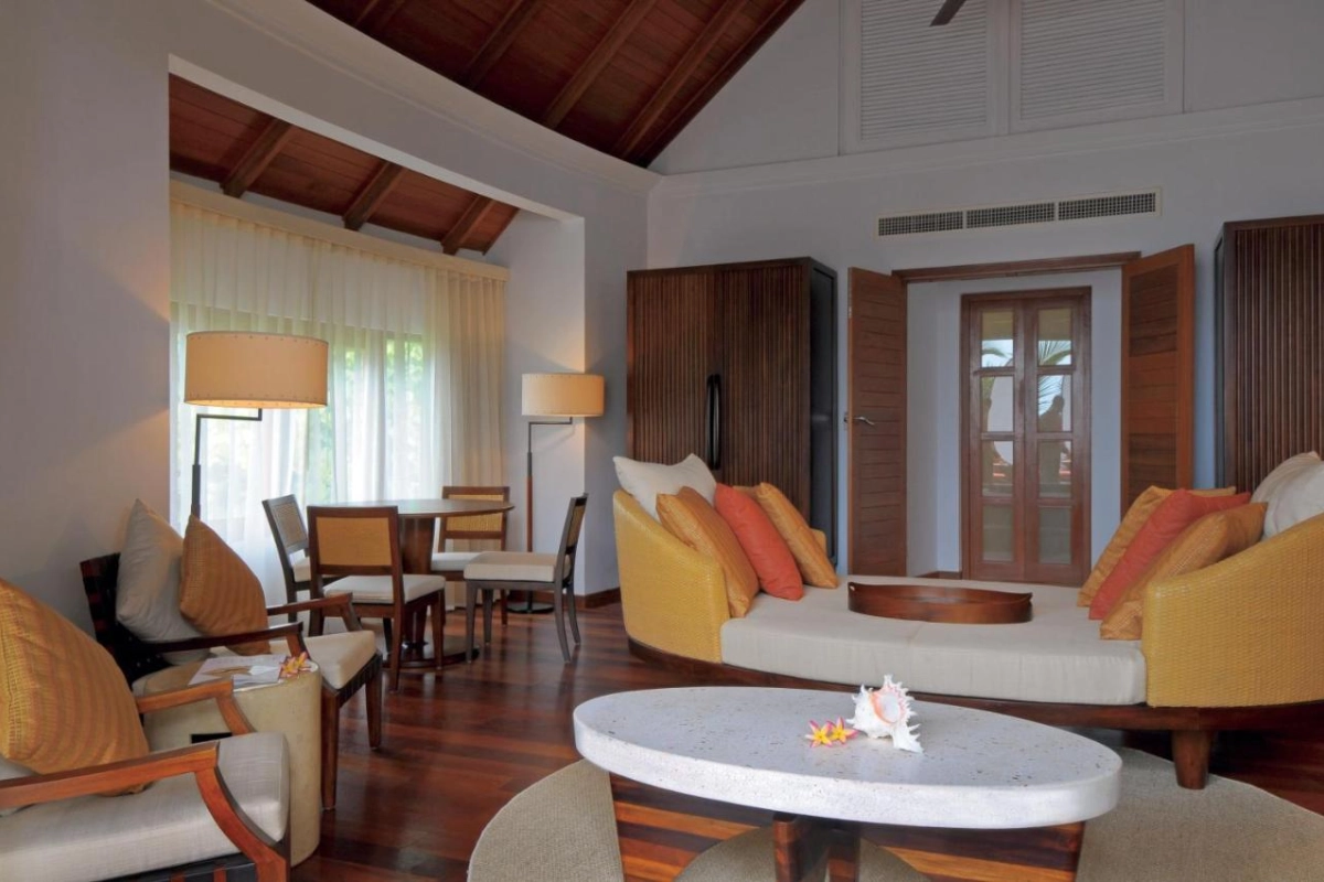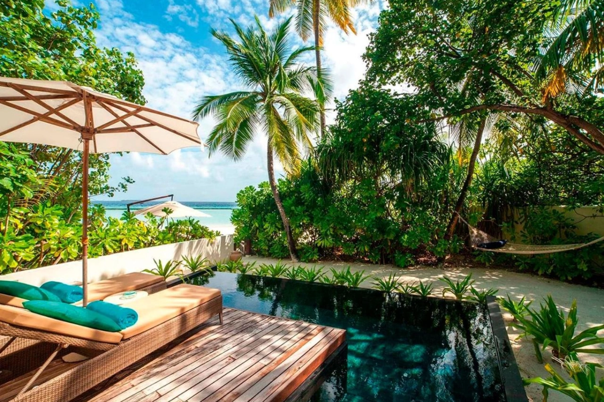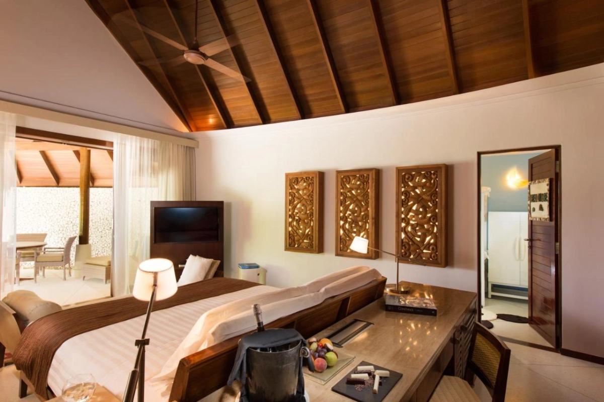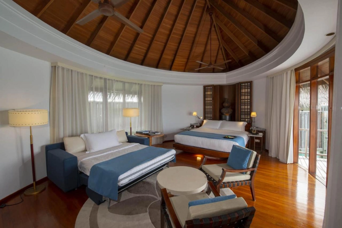 Each open-concept villa features hardwood flooring, well-crafted furnishings, and private plunge pools, with views of lush greenery or the turquoise lagoon. Equipped with flat-screen TVs, minibars, and spacious bathrooms with premium toiletries, the villas offer private terraces or sundecks for seamless beach or water access, creating a refined sanctuary of tranquility and luxury.