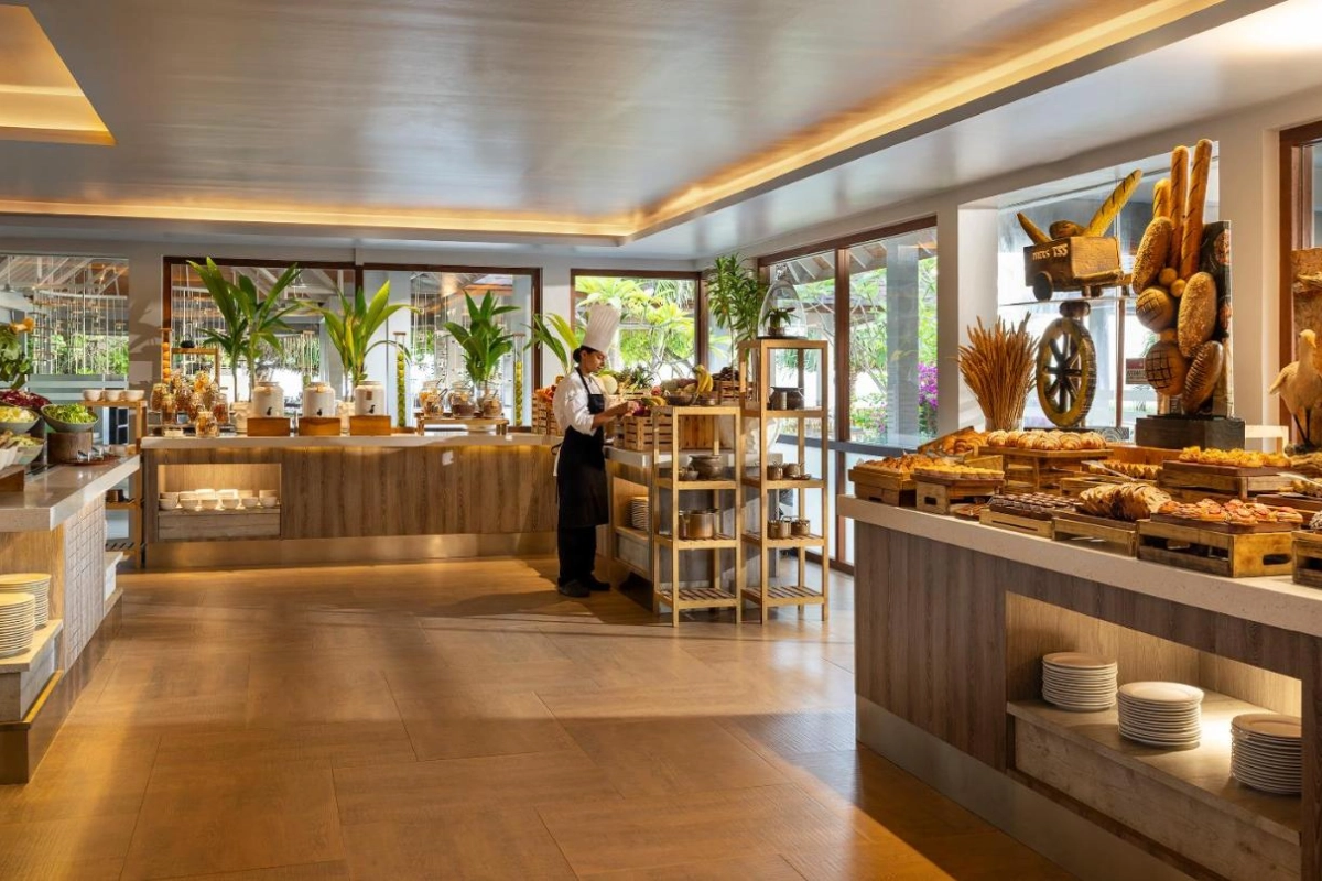 Dining is a vibrant journey across five venues. Capers serves international and Maldivian buffets in a relaxed setting, while Faru, with its open kitchen, offers grilled dishes for lunch or sunset dinners. Battuta presents African, Middle Eastern, and Southeast Asian flavours, Jade delivers à la carte dining with ocean breezes, and the Pizzeria crafts takeaway pizzas. Haali Bar dazzles with sunset bubbly, East Bar offers all-day cocktails, and Café provides coffees and pastries. The Dhigali Spa, nestled in a lush garden, offers indigenous therapies, 12 treatment rooms, an outdoor plunge pool, steam room, and yoga sessions. Guests can explore the house reef via snorkeling or diving, with water sports like windsurfing or dolphin cruises, complemented by three pools, a gym, and cultural activities like Boduberu music.