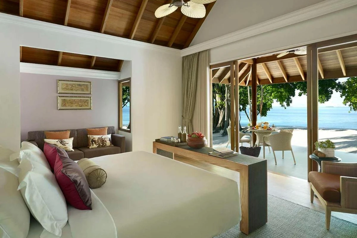 Each modern Thai-style villa features private terraces with stunning lagoon or ocean views, flat-screen satellite TVs, Bose surround sound systems, in-house movies, wine coolers, minibars, and Nespresso machines. Spacious bathrooms offer bathtubs, outdoor rain showers, and complimentary toiletries, including dental, shaving, and nail kits, creating a refined sanctuary of tropical elegance.