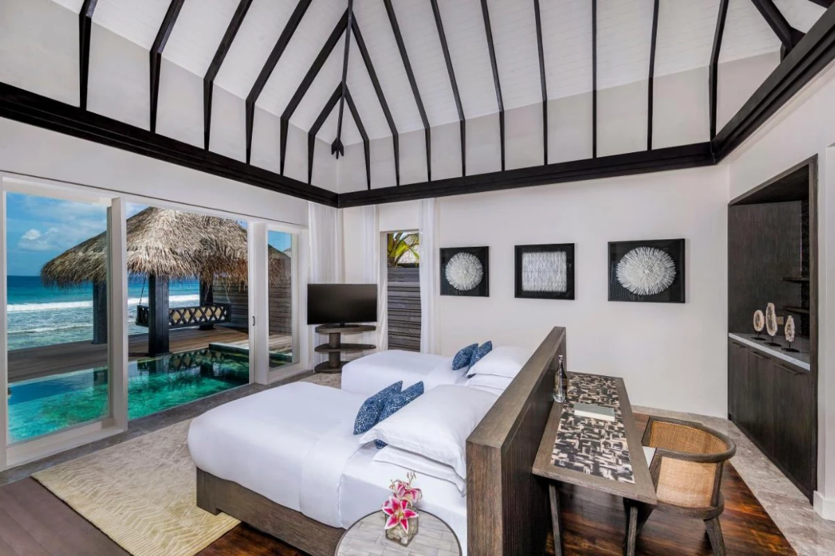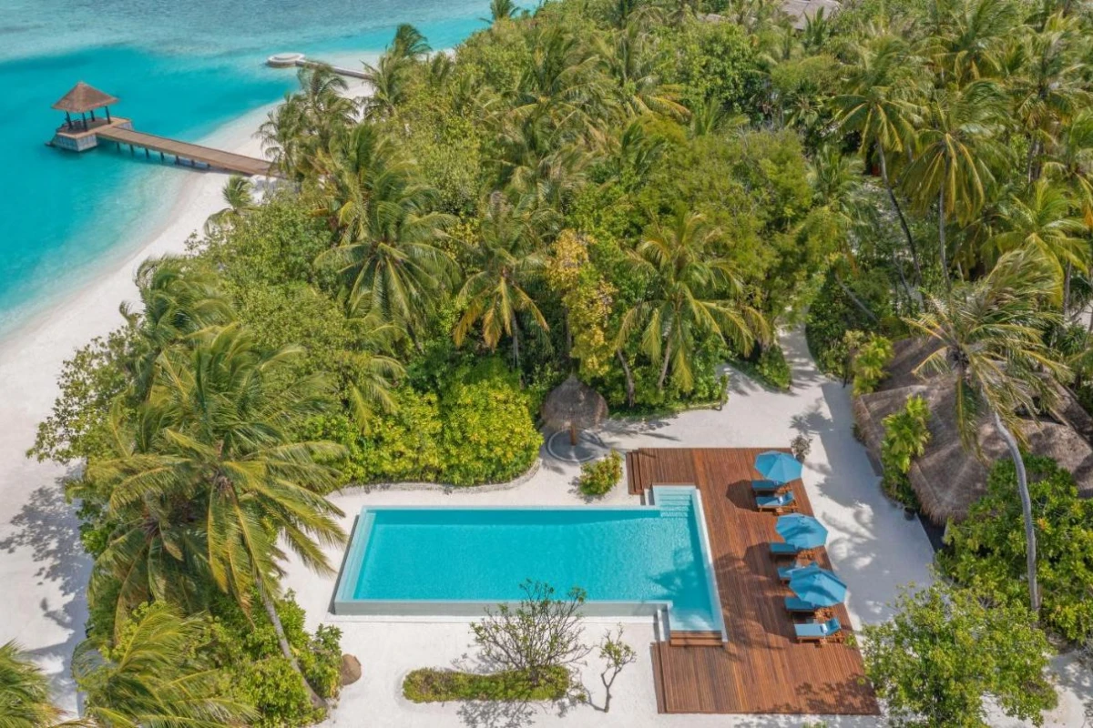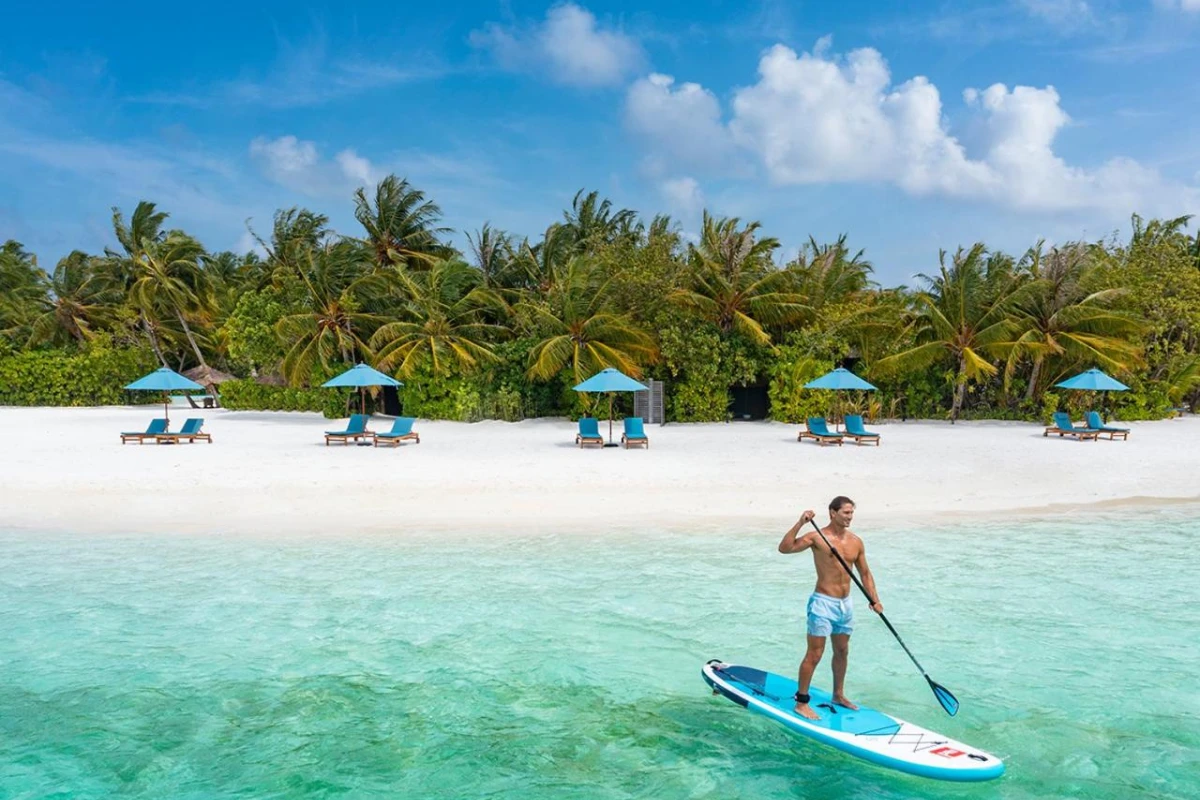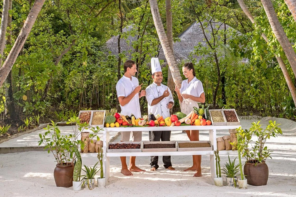 Dining is an elegant affair at The Living Room, a beachfront venue with a glass-walled wine cellar showcasing esteemed Old and New World vintages, serving international and Maldivian-inspired cuisine. Guests can also take a 2-3 minute pontoon ride to sister properties Anantara Veli and Anantara Dhigu for diverse dining, including SEA.FIRE.SALT's seafood and grills or Origami's theatrical teppanyaki. Private alfresco dining under starlit skies elevates special occasions. The spa, accessible in-villa or at Anantara's over-water facilities, offers luxurious treatments and holistic therapies. Guests can enjoy a freshwater pool, tennis courts, or water sports like snorkeling, diving, fishing, and surfing, with curated excursions such as sunset cruises or sandbank picnics immersing guests in the Maldives' natural beauty.