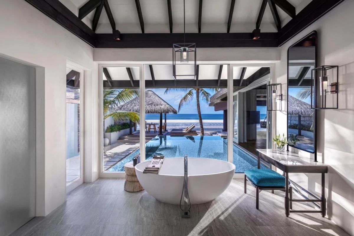 The 19 beach and ocean houses, including a majestic Two Bedroom Pool Residence, feature cool whitewashed interiors, private pools, air conditioning, flat-screen TVs, minibars, and spacious bathrooms with premium toiletries. Each house, hidden amidst verdant palms and sandy paths, offers private terraces with breathtaking ocean or garden views, ensuring utmost privacy. A dedicated house master provides tailored service, crafting a personalized retreat that feels like a luxurious holiday home.