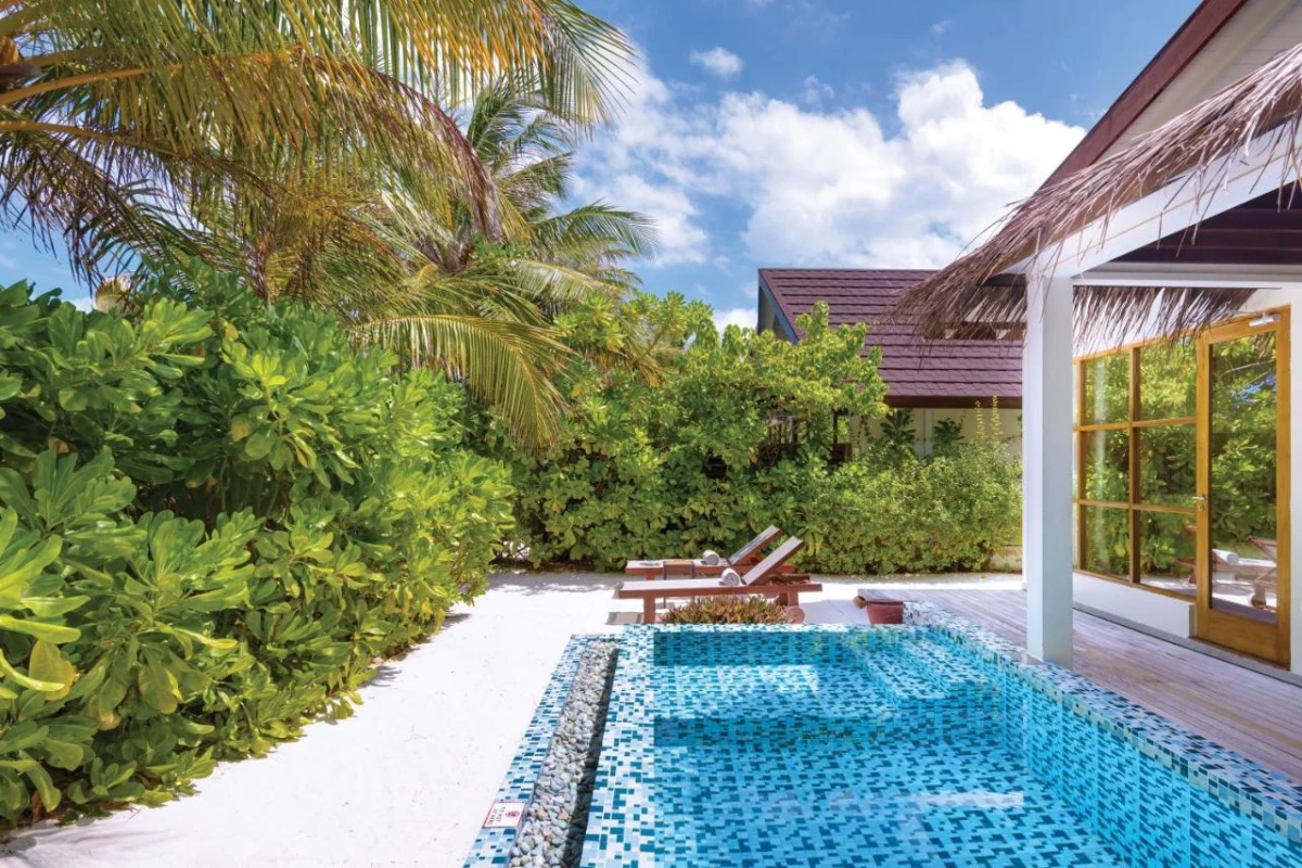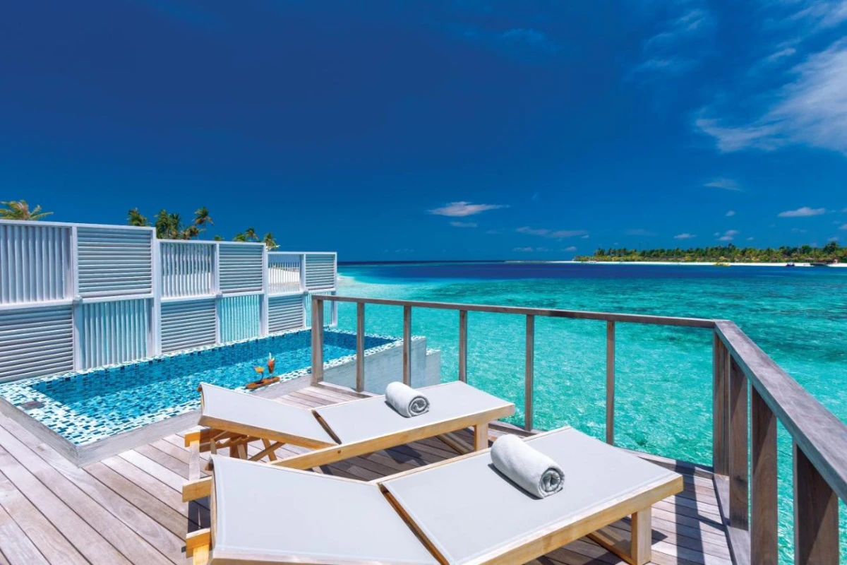 The 137 stand-alone villas and suites, including Beach Villas, Water Villas, and Honeymoon Villas, feature air conditioning, flat-screen TVs with cable channels, minibars, electric kettles, and private bathrooms with premium toiletries. Each villa offers private decks or verandas with sea or garden views, some with private pools, creating a refined and serene retreat. The Serenity Plan, a premium all-inclusive package, ensures unlimited dining, beverages, and activities.