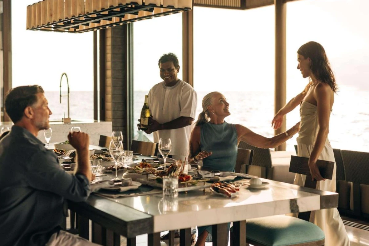 The 51 minimalist villas, nestled among lush greenery or perched over water, feature open-concept bathrooms, private decks with day beds, flat-screen TVs, media hubs, and premium toiletries. Each villa offers scenic ocean or garden views, some with private infinity pools, creating a serene and eco-conscious retreat that harmonizes with the island's preserved flora and fauna.
