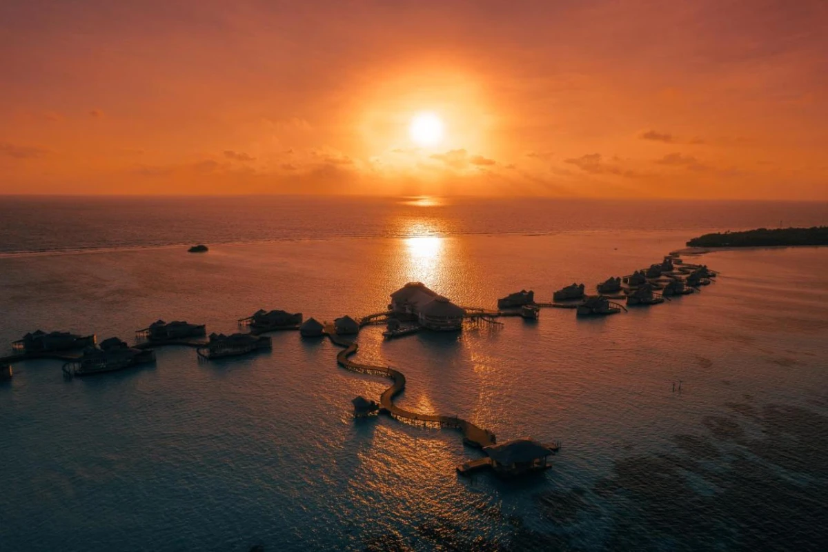 Overwater villas with private slides, open-air cinema, and attentive yet relaxed service. Postcard-blue lagoon and creative dining, perfect for couples.