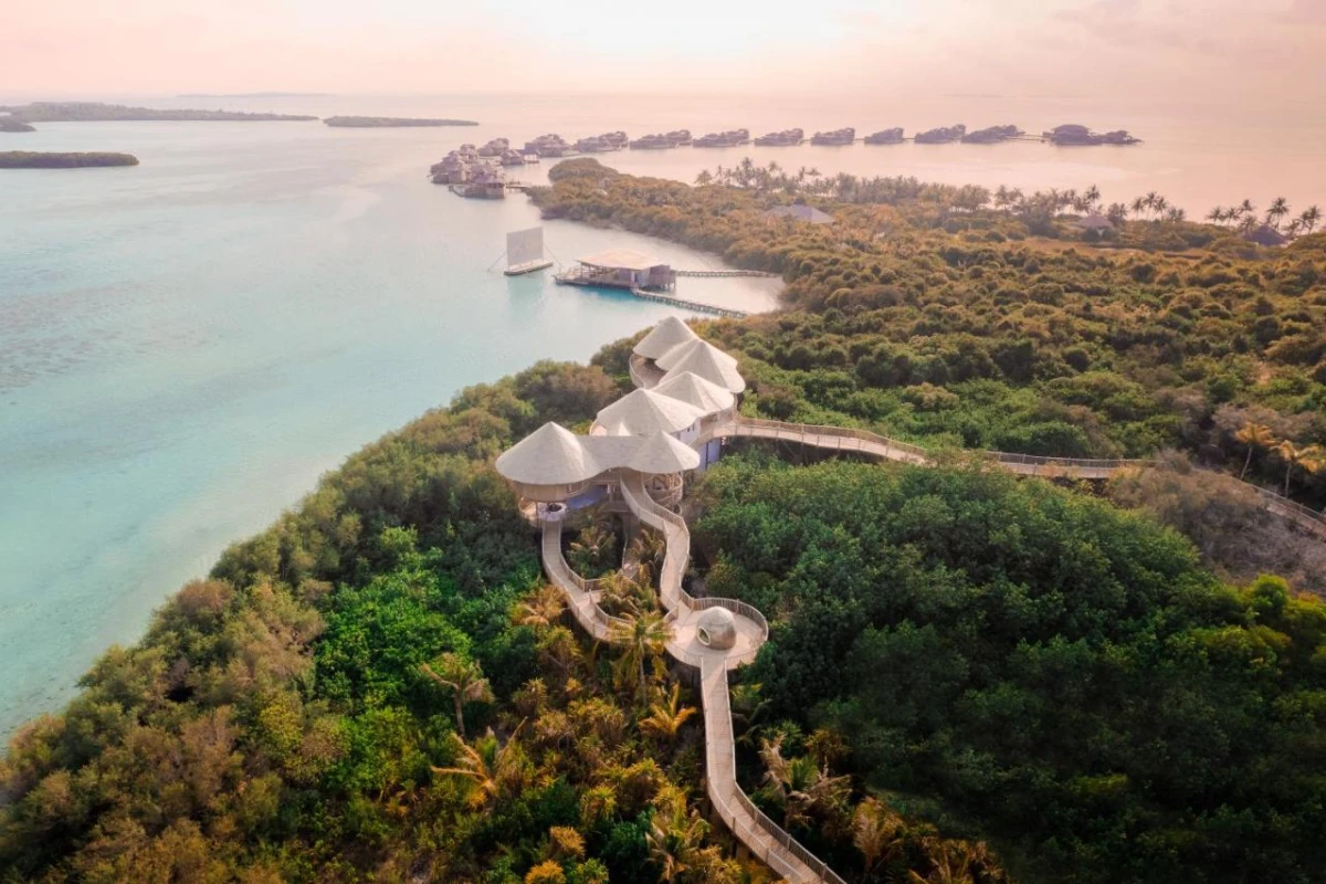 Soneva Jani, an exquisite five-star resort in the Noonu Atoll's Medhufaru Island, is a beacon of eco-luxury within a 5.6-kilometer lagoon, offering an adults-focused retreat with unparalleled seclusion and a commitment to sustainability.