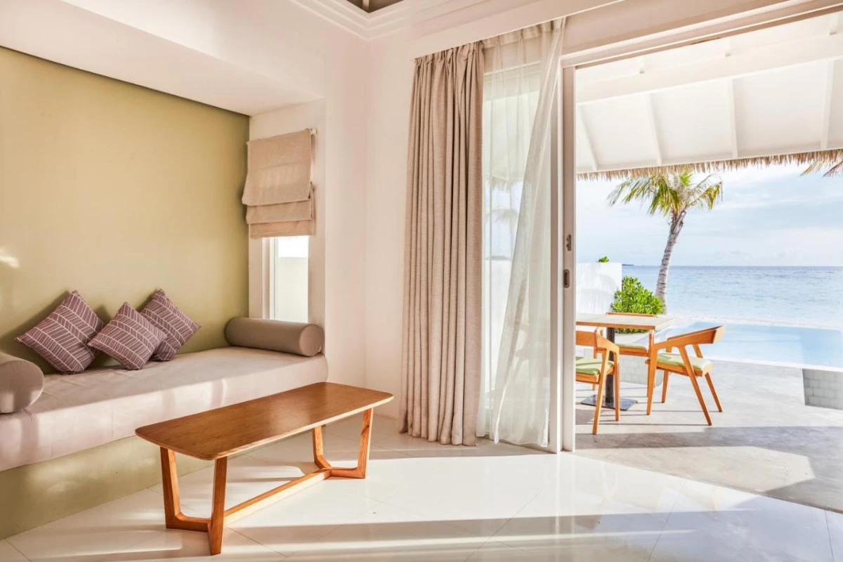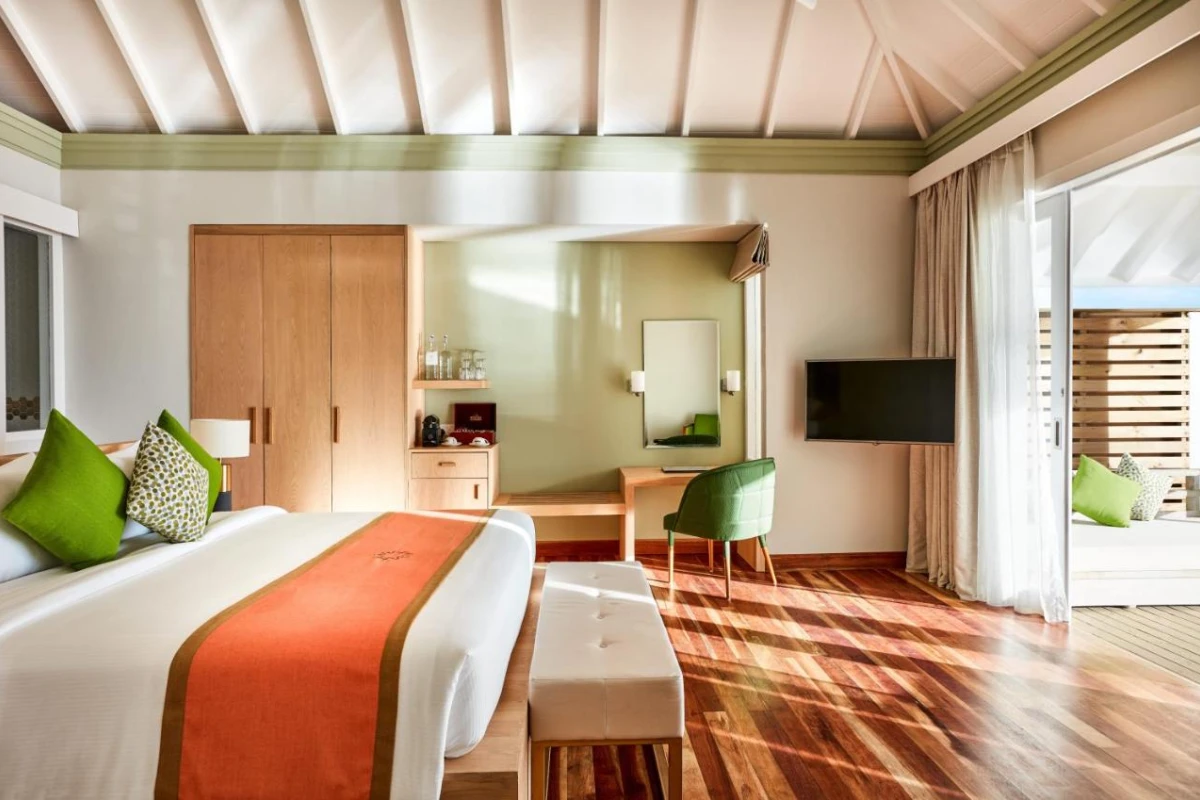 The 274 accommodations, ranging from beachfront villas to overwater suites, blend modern elegance with Maldivian charm. Each features air-conditioned interiors, flat-screen televisions, minibars, coffee machines, safes, and spacious bathrooms with premium toiletries and showers. Private terraces offer direct beach access or lagoon views, with select villas boasting private pools or Jacuzzis, perfect for soaking in the island's serene beauty.