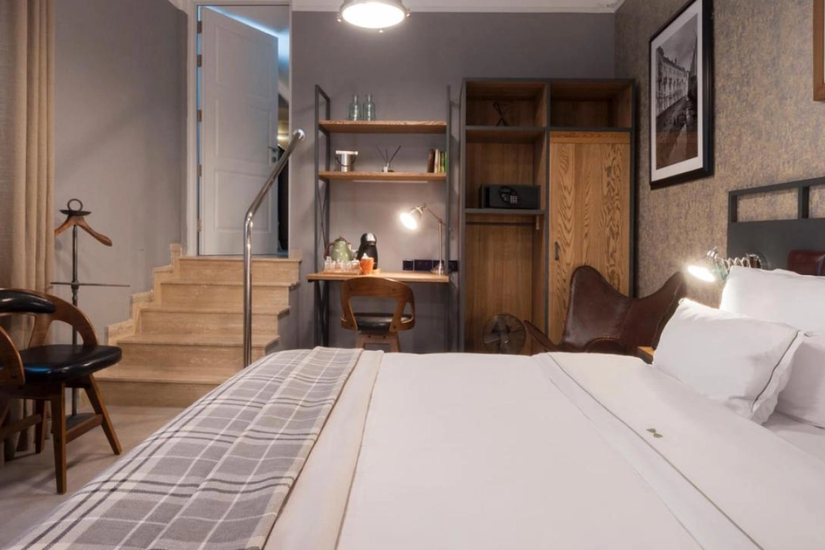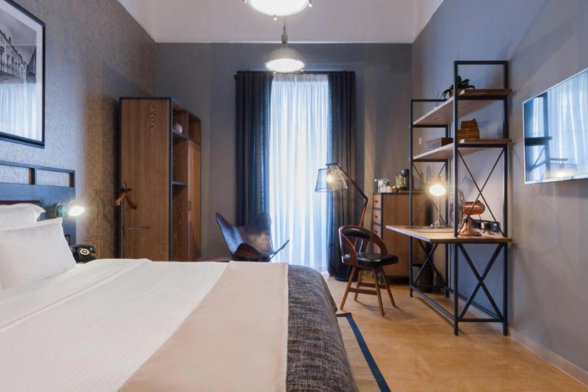 The 27 air-conditioned rooms unfold with contemporary poise, featuring flat-screen smart TVs, work desks, coffee machines, minibars, and luxurious bathrooms with hairdryers, bathrobes, slippers, and premium toiletries. Rooftop views of the city's charming skyline create serene escapes, while the raw-finish, retro-industrial design—blending exposed materials and awe-inspiring architecture—breathes new life into the ancient walls. Guests revel in full control at their fingertips via smartphone, managing lights, temperature, and privacy with effortless grace, complemented by complimentary high-speed WiFi throughout.
