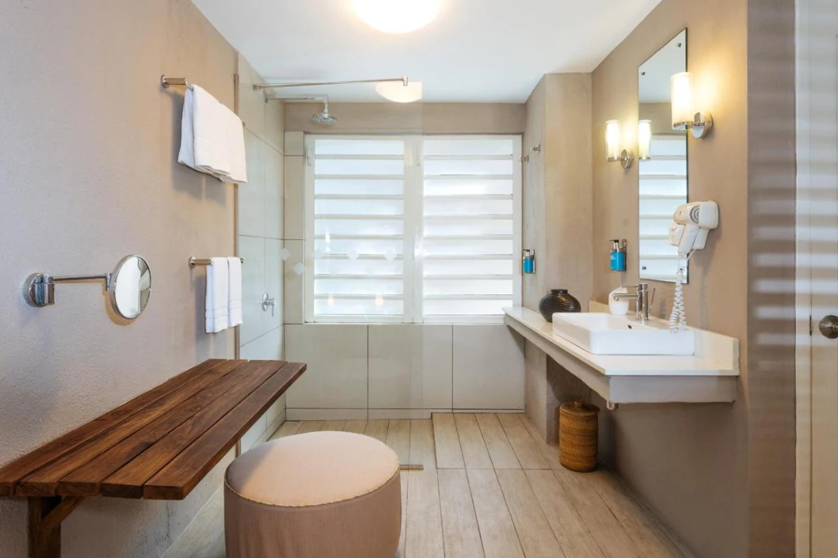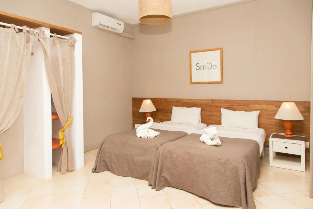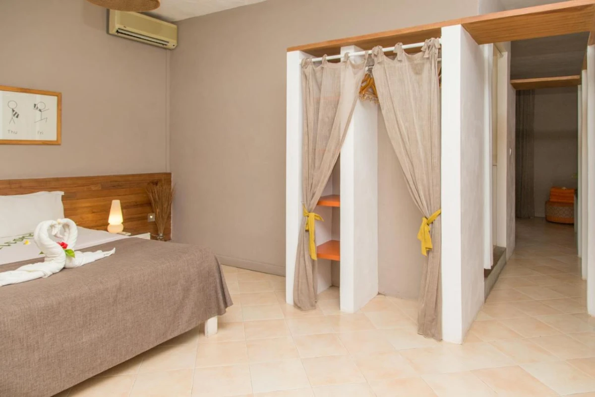 The 50 recently renovated rooms, nestled among thatched beach huts and exotic tropical plants, offer air-conditioned comfort with modern amenities and private terraces showcasing views of the shimmering Indian Ocean or lush gardens. Each space, designed with a fresh, soothing aesthetic, invites guests to unwind in a serene, home-like ambiance, with select rooms tailored for couples seeking intimacy.