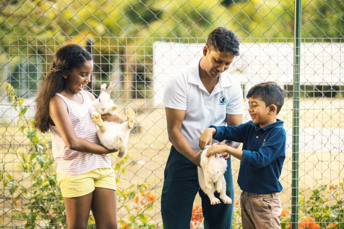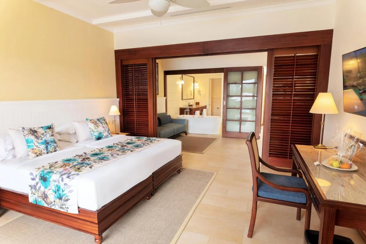The 272 spacious rooms, suites, and a villa, adorned with rich wooden furnishings, feature air-conditioned comfort, flat-screen televisions, minibars, and modern bathrooms with premium toiletries. Each opens to a private balcony revealing stunning views of the turquoise Indian Ocean or verdant gardens.