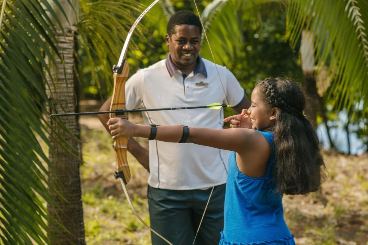 The Tropical Flower Spa, spanning 3,500 square meters, pampers with massages, facials, and wellness therapies. A shimmering outdoor pool invites relaxation, while complimentary activities include a 9-hole golf course, tennis courts, snorkeling, kayaking, and water-skiing, with a diving school offering marine adventures.