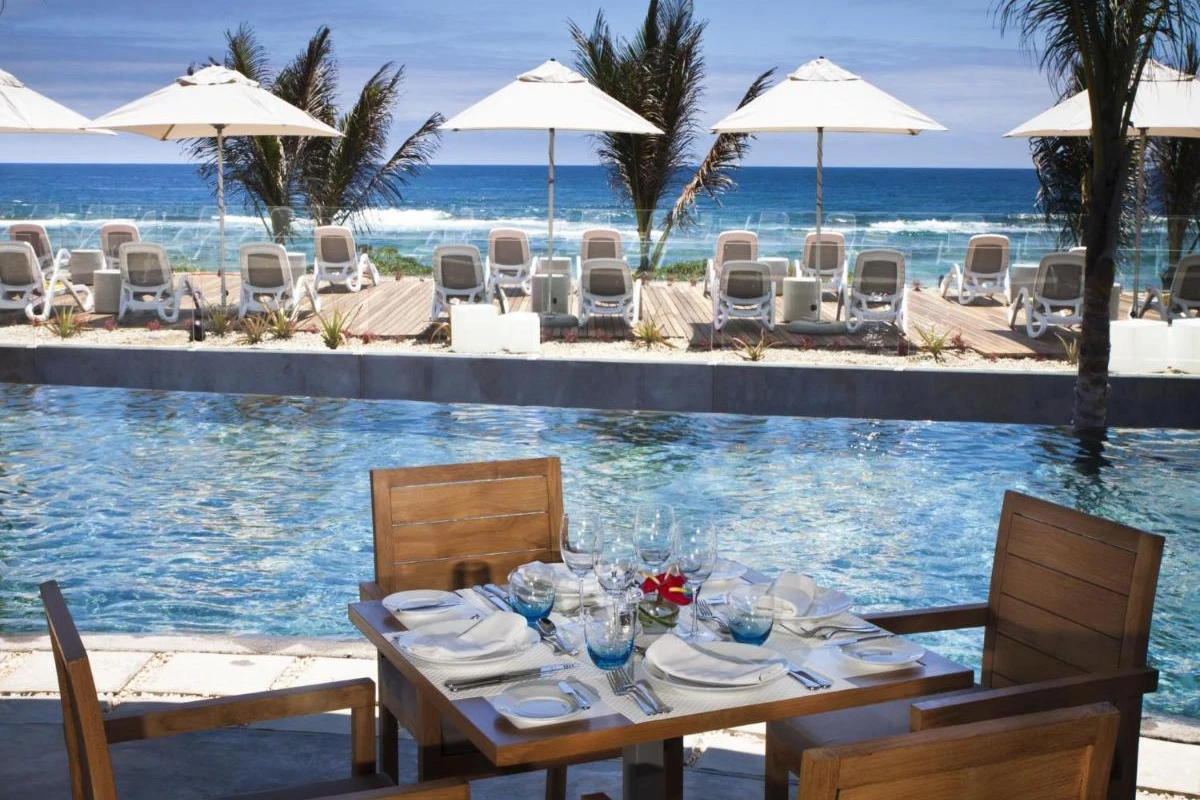 Dining at the resort's vibrant restaurant offers a delightful mix of local Mauritian and international cuisines, with breakfast and dinner served in a spacious, airy setting. A chic bar crafts artisanal cocktails, savoured against the backdrop of the ocean's tranquil allure.