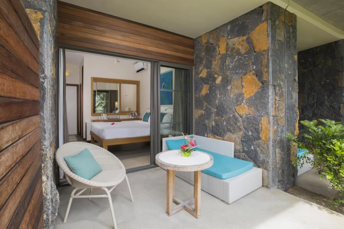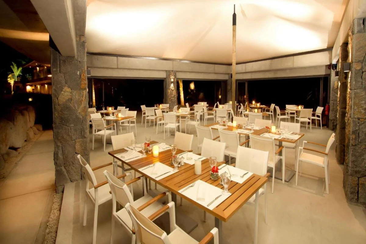 The 100 bright and spacious rooms feature air-conditioned comfort, flat-screen televisions, iPod docking stations, safes, desks, and private bathrooms with premium toiletries. Many include terraces showcasing stunning views of the sea, mountains, pool, or lush gardens, blending modern elegance with tropical serenity.