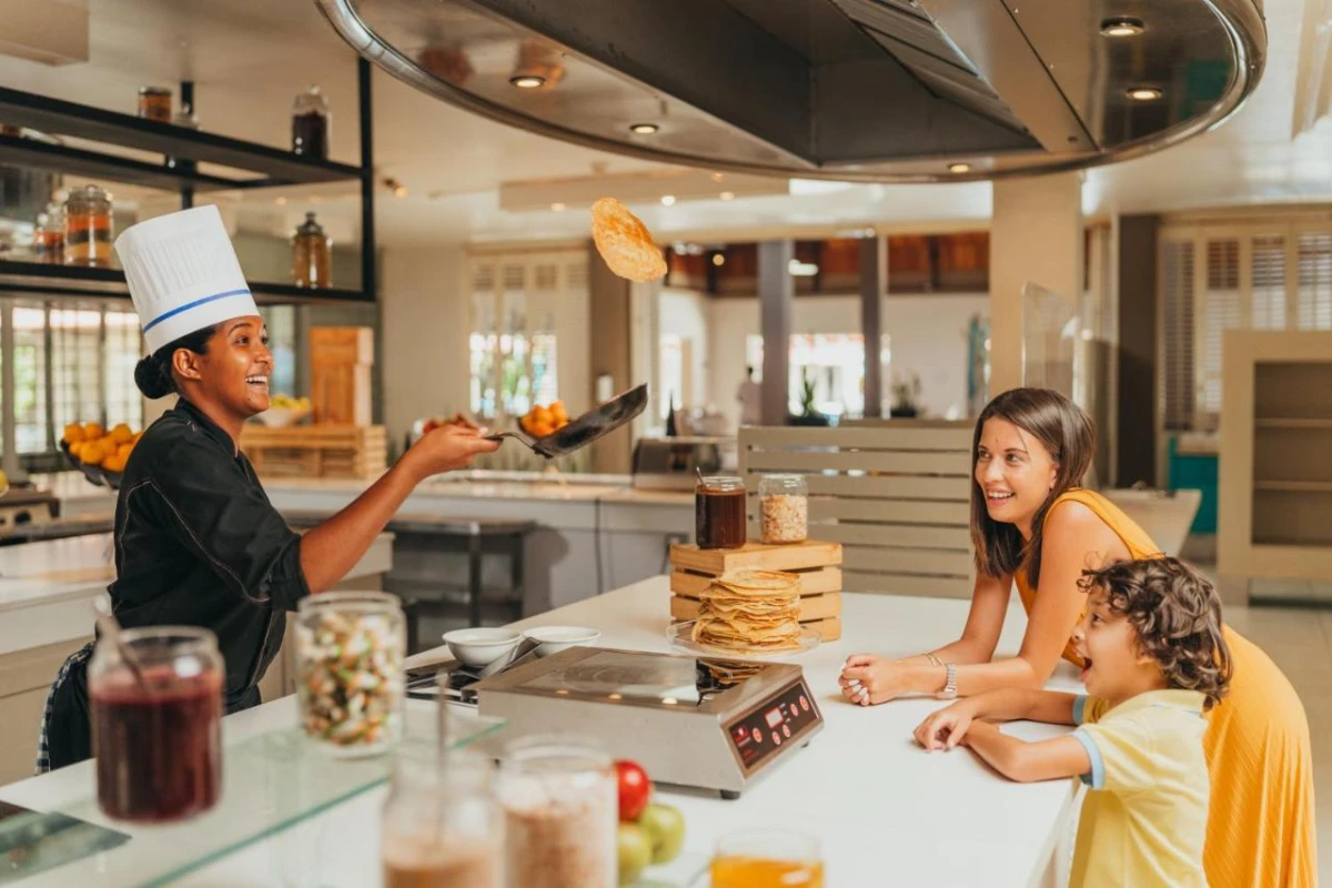 Dining at the signature restaurant, with its poolside terrace, offers a sumptuous breakfast buffet and a diverse à la carte menu blending Mauritian and international cuisines for lunch and dinner. A lively beach bar and sophisticated lounge bar craft artisanal cocktails, savoured amidst the island's balmy allure.