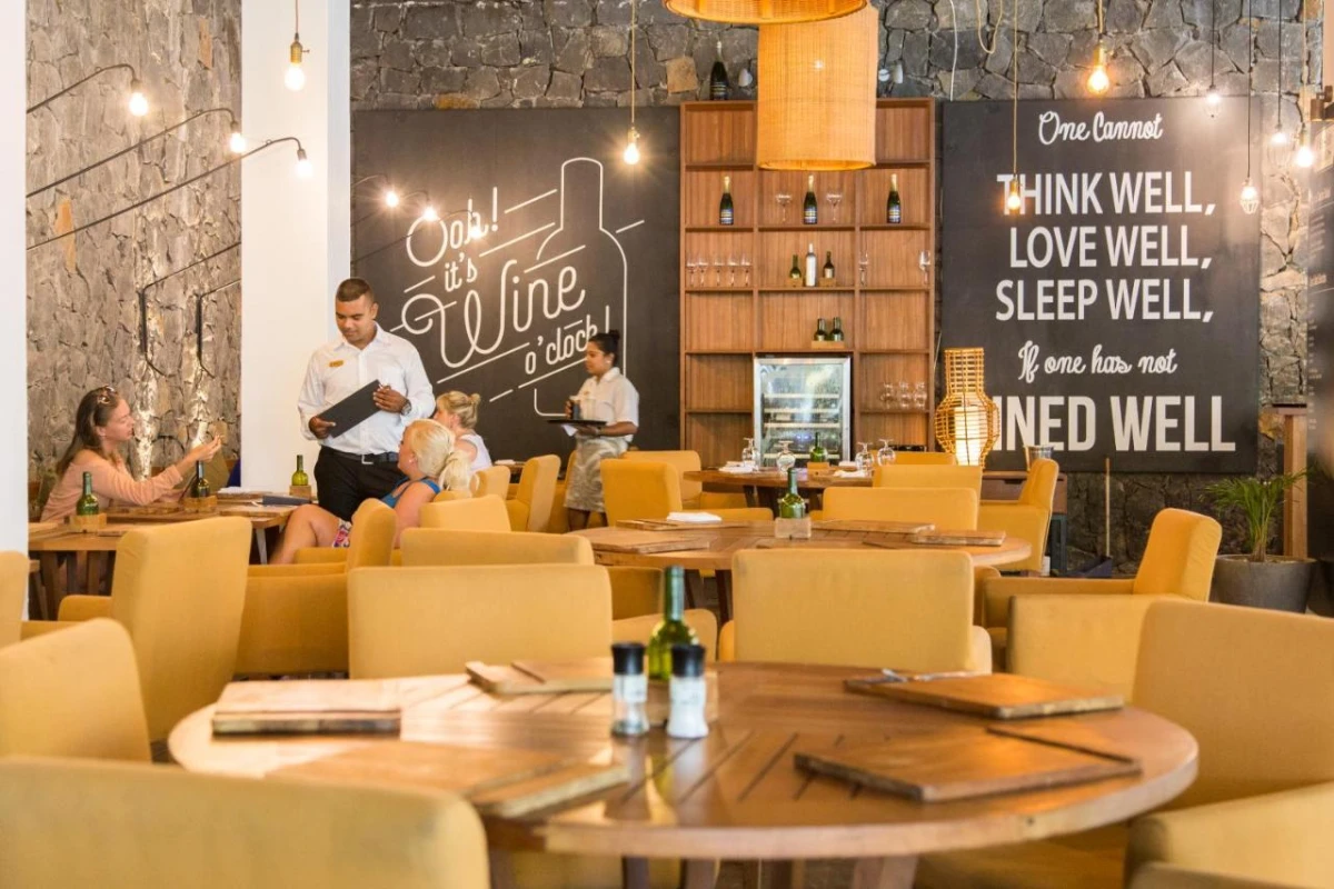 Kot Nou reimagines Mauritian classics as tapas, Lime specializes in sushi, and Beach BBQ serves grills on the sand. Six bars, including the Pool Bar, Ō Beach Bar, and After nightclub, craft cocktails and host live music, enhancing the island's balmy allure.