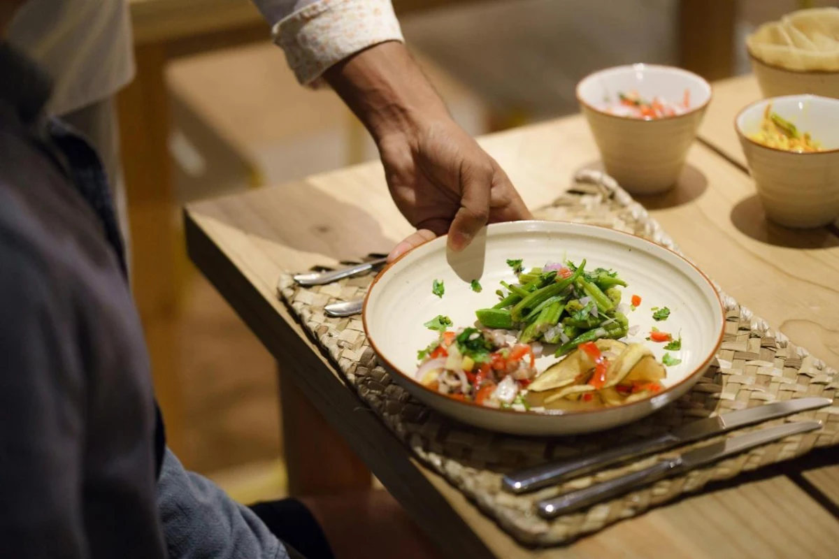 The 69 seafront rooms and villas, adorned with minimalistic yet cozy décor in natural tones, feature air-conditioned comfort, flat-screen televisions, minibars, and elegant bathrooms with premium toiletries. Private balconies or terraces, some with private pools, unveil stunning lagoon or tropical garden views.