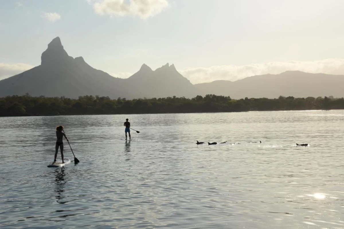 Dining at two distinguished restaurants offers a vibrant mix of authentic Mauritian and international flavours. Three bars, including a chic rooftop venue, serve artisanal cocktails and light bites, savoured against Tamarin Bay's tranquil allure and legendary sunsets.