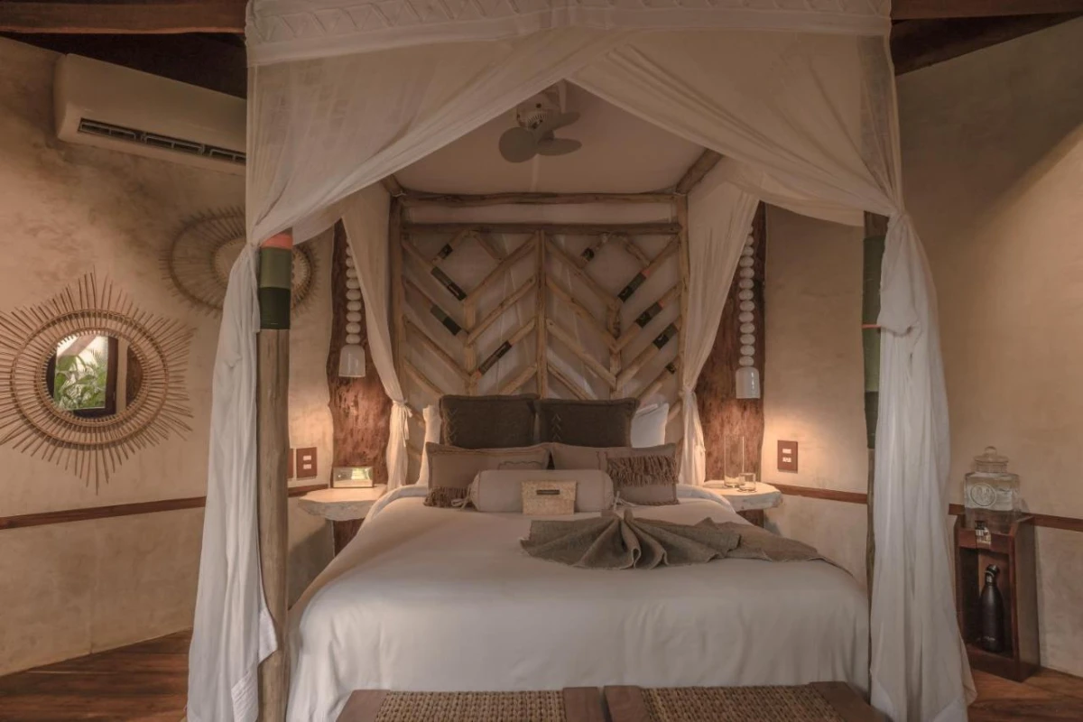 The 21 exquisitely crafted rooms, designed for soulful serenity, pulse with air-conditioned elegance, featuring coffee machines, safety deposit boxes, and plush private bathrooms with showers and complimentary toiletries. Many rooms unveil mesmerizing sea views, weaving a tranquil sanctuary for couples, eco-conscious travellers, or seekers of harmony. Complimentary Wi-Fi ensures seamless connectivity, while sustainable construction materials reflect the resort's commitment to Tulum's future.