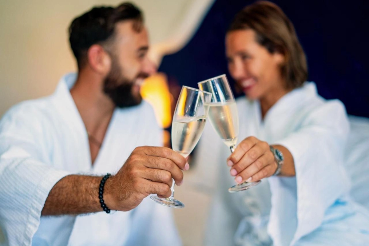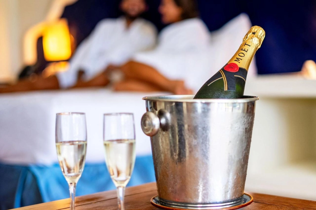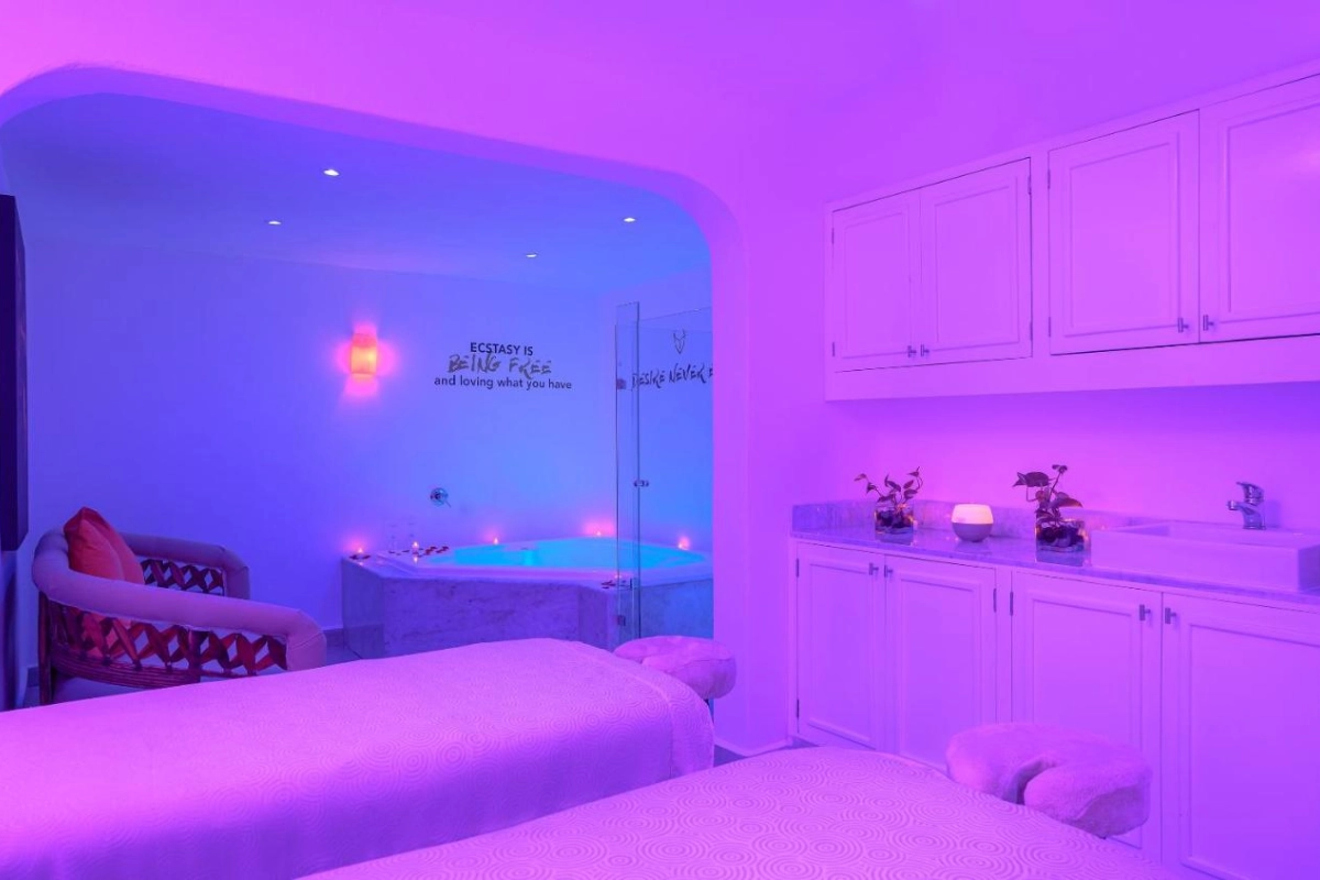 The 88 exquisite guest rooms, suites, and penthouses, designed as sensual sanctuaries, pulse with air-conditioned sophistication, featuring flat-screen TVs, fully stocked minibars, and plush bathrooms with organic bath amenities. Each boasts a private balcony or terrace with breathtaking ocean views, crafting an intimate escape for couples over 21 seeking to reinvent passion. Complimentary Wi-Fi and select 24-hour room service weave seamless indulgence into this adults-only retreat.