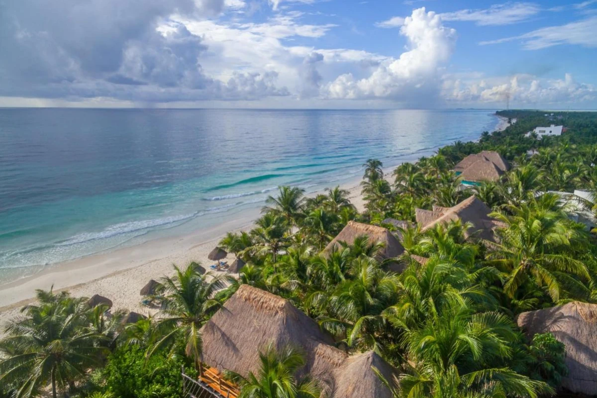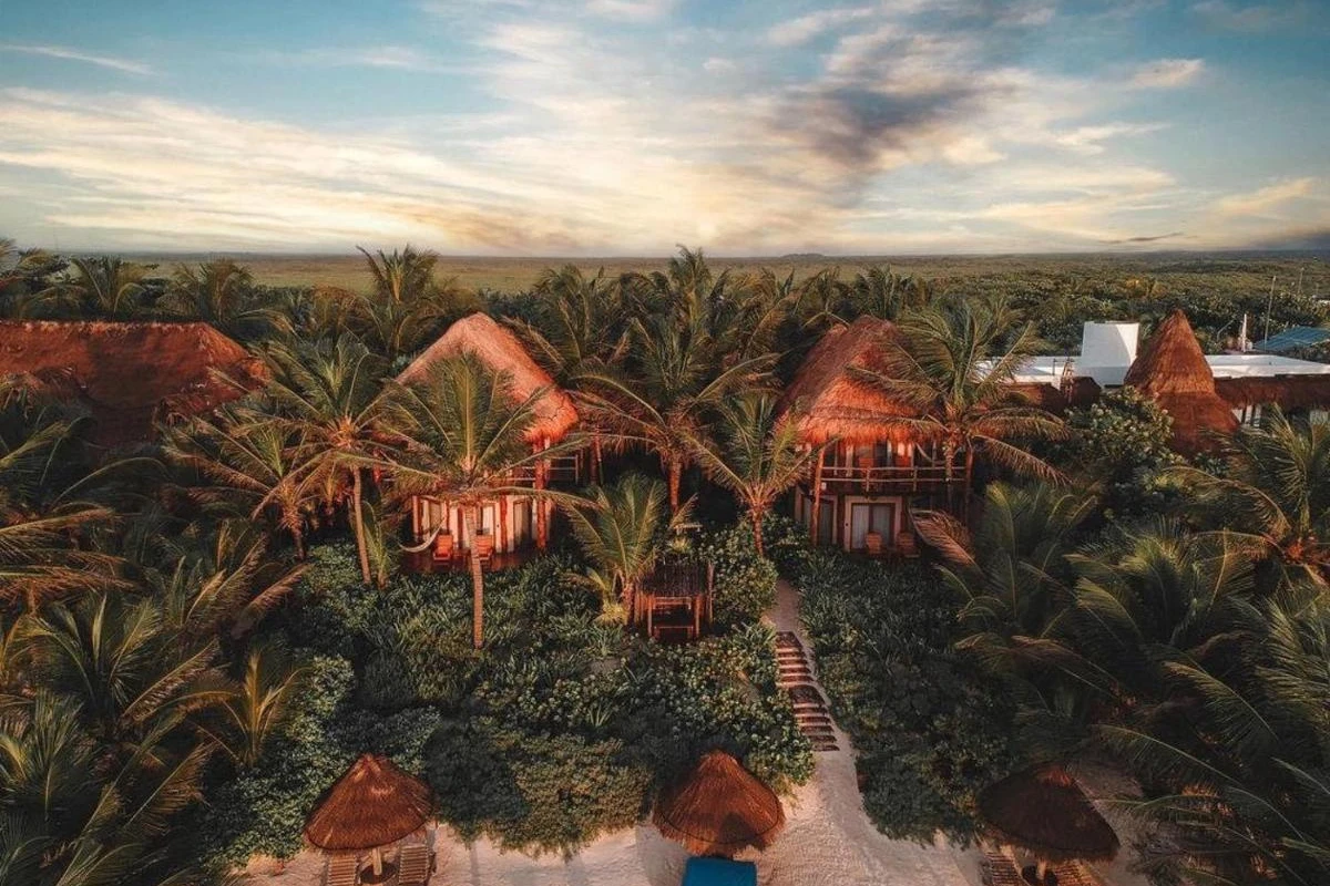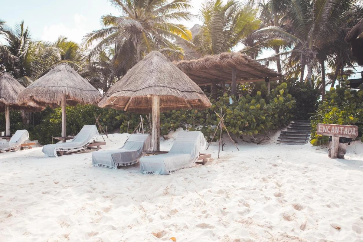 Hotel Encantada, a radiant five-star boutique retreat on Tulum's unspoilt beachfront, enchants with rustic luxury amid powder-fine sands, weaving the tranquil allure of the Caribbean with the natural serenity of the Sian Ka'an Biosphere Reserve and Tulum National Park.