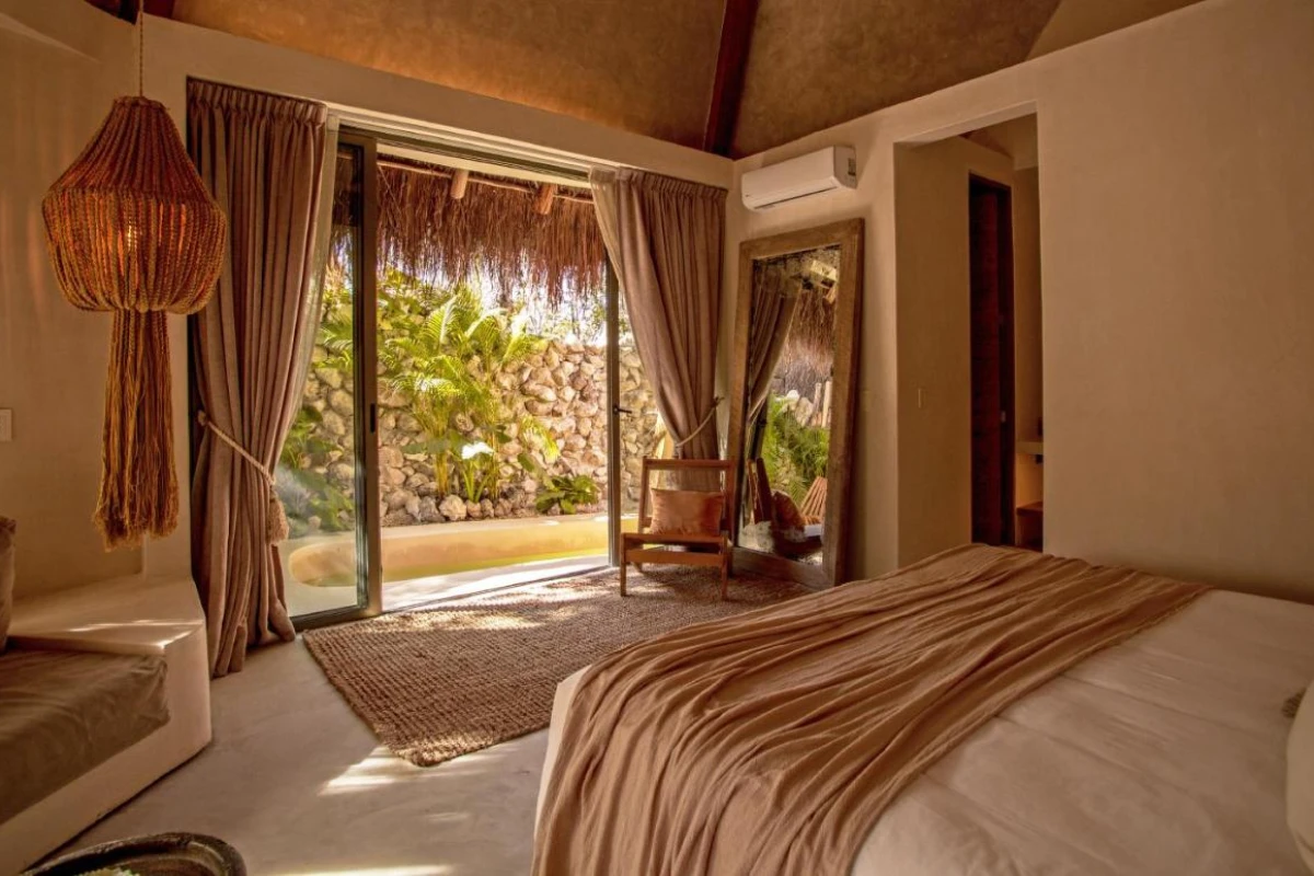 The 20 exquisitely crafted rooms, adorned with handmade décor from Tulum's finest artisans and locally sourced materials, pulse with air-conditioned elegance, featuring flat-screen TVs, minibars with healthy snacks, and plush private bathrooms with premium toiletries. Each room opens to a private garden with relaxing amenities like hot or cold plunge pools (on request) or hammocks, unveiling tranquil jungle or garden views, crafting an ethereal haven for couples or seekers of transformation. Complimentary Wi-Fi and 24-hour security weave seamless connectivity and peace of mind into this pet-friendly retreat.