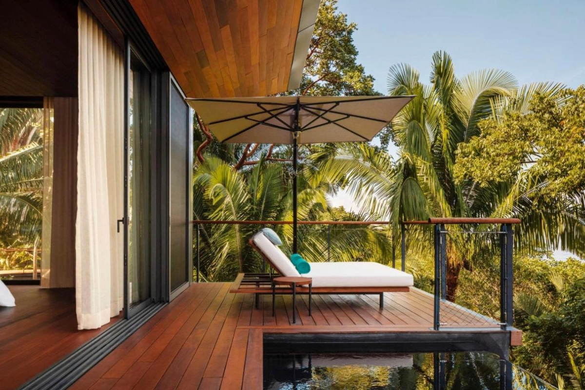The 105 exquisite suites and treehouses, radiating modern elegance, shimmer with air-conditioned comfort, featuring flat-screen TVs, spacious wardrobes, safety deposit boxes, and plush bathrooms with premium toiletries. Private balconies or terraces unveil captivating ocean or verdant garden views, crafting an intimate haven for couples or discerning travellers. Complimentary Wi-Fi ensures seamless connectivity in this opulent retreat.