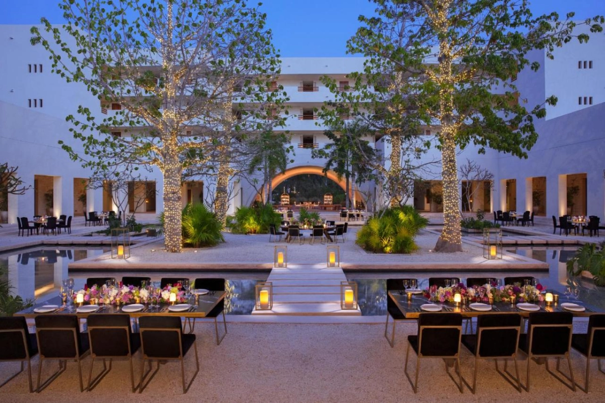 Six à la carte restaurants, an international buffet, a café, and a grill ignite the senses with gourmet French, Italian, and Mexican cuisines, offering vegetarian and gluten-free options, paired with seven stylish bars and lounges crafting limitless premium cocktails. Eleven serene pools, including an expansive infinity pool, and Secrets Spa by Pevonia's rejuvenating treatments pamper, while snorkeling, canoeing, kayaking, billiards, table tennis, darts, yoga, wine tastings, karaoke, and nightly live music or romantic celebrations spark connection. Winding wooden walkways through local flora and attentive 24-hour concierge services curate bespoke Riviera Maya adventures, from turtle encounters to cultural tours.