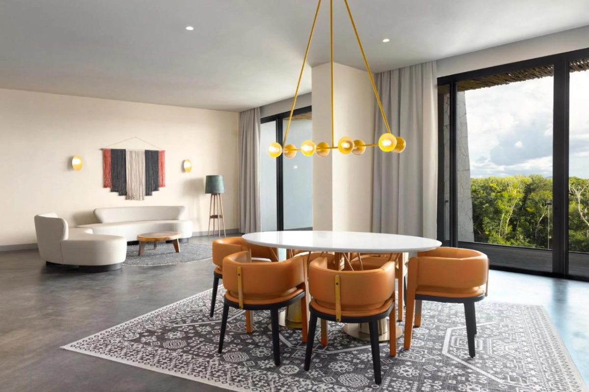 Five à la carte restaurants ignite the senses with vibrant American, Mediterranean, Peruvian, and Mexican cuisines, offering vegetarian, vegan, and dairy-free options, alongside buffet, à la carte, or continental breakfasts. Stylish bars craft artisanal cocktails, while 24-hour room service and the nearby exclusive beach club elevate dining with Tulum's radiant coastal charm. A shimmering outdoor pool, soothing hammam, and state-of-the-art fitness centre invite relaxation, while the private beach offers snorkeling, kayaking, and sunbathing. Daily yoga, curated cultural tours, and nightly entertainment with live music and themed events spark vibrancy, with attentive concierge services curating bespoke Tulum adventures.